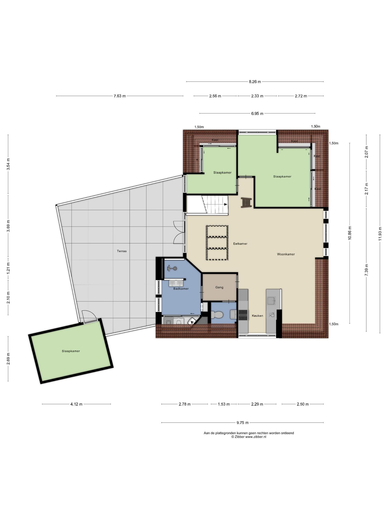 – Hobby-/werk-/slaapkamer (nu logeerkamer) op het dakterras