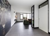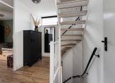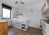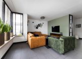 In 2020 hebben de huidige eigenaren de woning van binnen helemaal op elkaar afgestemd. Een moderne badkamer, strakke wanden en vloeren en in de woonkamer een prachtige cinewall met sfeervolle elektrische haard. De garage wordt nu gebruikt als extra woonruimte en dit kan heel goed. De ruimte is namelijk verwarmd, voorzien van een keurige vloer en deze ruimte is ideaal voor hobby’s en als wasruimte. In de vaste kasten kun je, naast de wasmachine en droger die zo keurig weggewerkt zijn, van alles netjes opbergen. De dubbele toegangsdeuren van deze ruimte, maken het ook goed te gebruiken als garage.