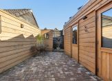 Buiten kun je heerlijk zitten onder de grote veranda met glazen pui. Aan de achterzijde van de woning zijn twee schuren: één geïsoleerde berging met wasmachine- en drogeropstelling en een tweede schuur voor gereedschap e.d. Naast het huis kun je je eigen auto parkeren en is nog een houten fietsenberging en een extra opslagruimte.