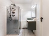 Ruime overloop – drie slaapkamers – ruime badkamer voorzien van wastafel, douchecabine en 2e toilet.