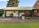 Rondom de woning heeft u veel ruimte en privacy. De tuin is aangelegd met diverse terrassen, gazon en er zijn mooie struiken, beplanting en bomen te vinden. Er is een overkapping die vanuit de woonkamer en keuken bereikbaar is en een houten blokhut voor extra opslag van tuinstoelen en gereedschap. De stenen garage heeft een aangebouwde serre en carport. Genoeg ruimte om uw auto droog te parkeren en u heeft zelfs ruimte voor meer auto’s op de oprit.