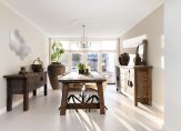 ‘Terwijl de koffie loopt, kun je mij vinden op mijn favoriete plekje in het huis. Hier aan het kookeiland zit ik graag om even een drankje te doen, mijn telefoon te checken of het laatste nieuws te lezen. De keuken is toch wel de heel fijne plek in het huis en hier kun je je heerlijk even terugtrekken als de anderen in de woonkamer Netflixen of aan het gamen zijn. Op een zomerse dag kunnen de openslaande deuren in de keuken weer open en loop je zo het terras op. Ik kijk nu al uit naar deze dagen!’