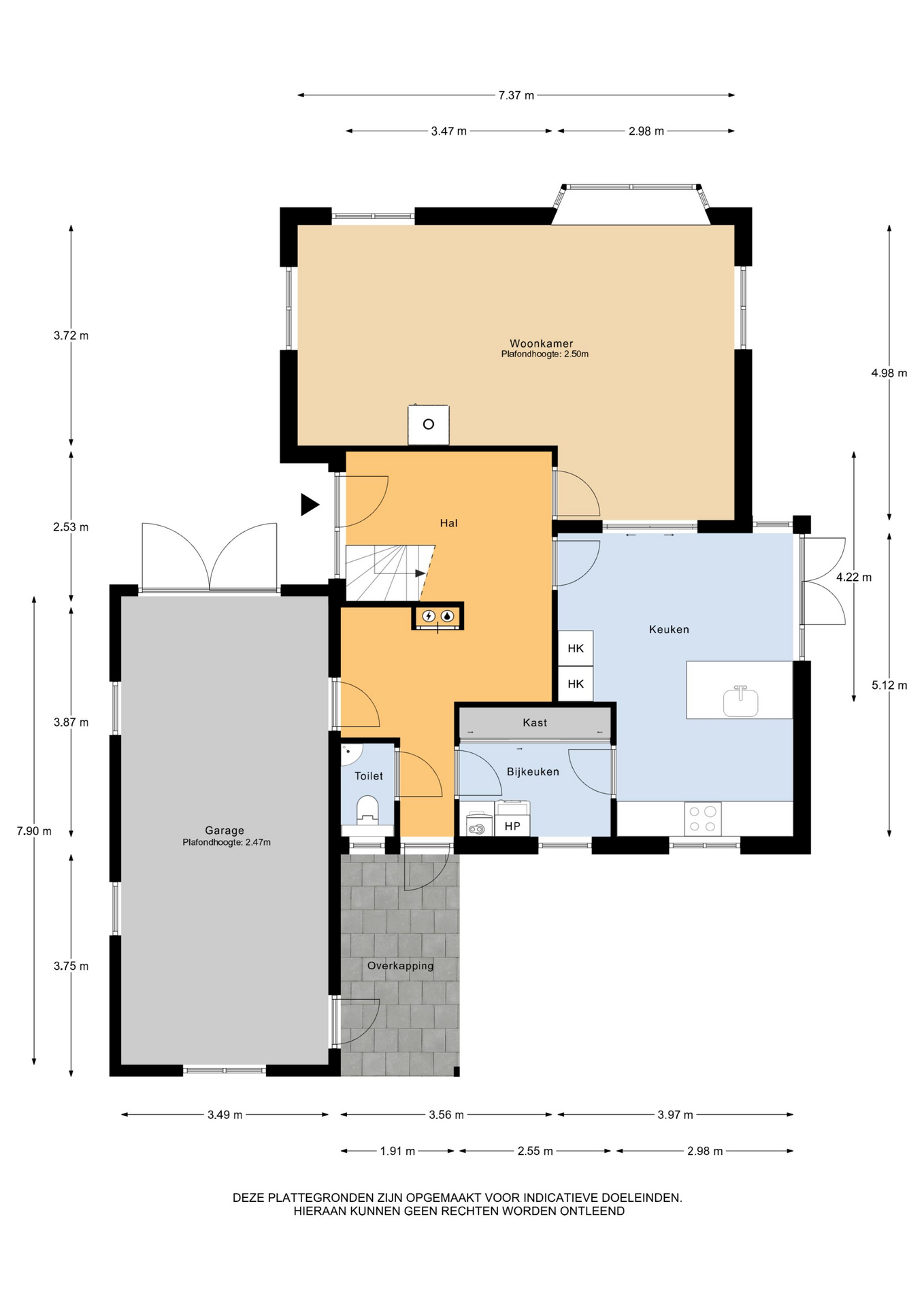 De bijkeuken geeft veel bergruimte en is praktisch met aansluiting voor wasmachine en droger. In de hal is het toilet gesitueerd en is er binnendoor toegang naar de garage. De aangebouwde garage is een groot pluspunt voor de handige hobbyist of autoliefhebber. Er is krachtstroom aanwezig, een smeerput (ook handig voor extra bergruimte), en een puls-installatie. Denk je alvast vooruit? Het realiseren van een slaap- en/of badkamer op de begane grond behoort tot de opties, waardoor de woning ook uitstekend geschikt is voor levensloopbestendig wonen.