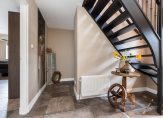 Begane grond: entree/ruime hal – toegangsdeur naar woonkamer of keuken – woonkamer aan voorzijde – ensuite deuren naar de keuken met spoeleiland en luxe uitgevoerd, bijkeuken en doorgang naar hal en garage.
