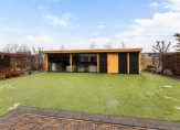 In de tuin is een mooie ruime overkapping aanwezig. Ook in het voor- en naseizoen zit je hier goed door de glazen pui. De ligging aan het water geeft rust en je hebt geen achterburen. De tuin is mooi aangelegd met meerdere fruitboompjes.