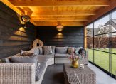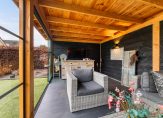 Voorzien van screens en elektrische luifel boven terras in achtertuin