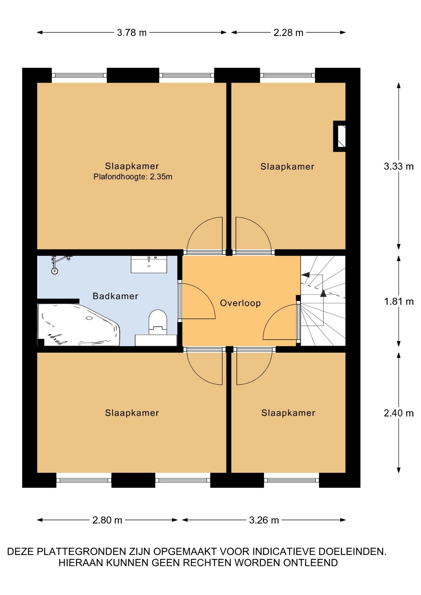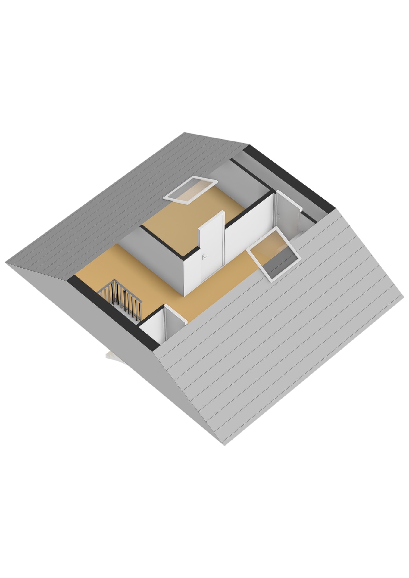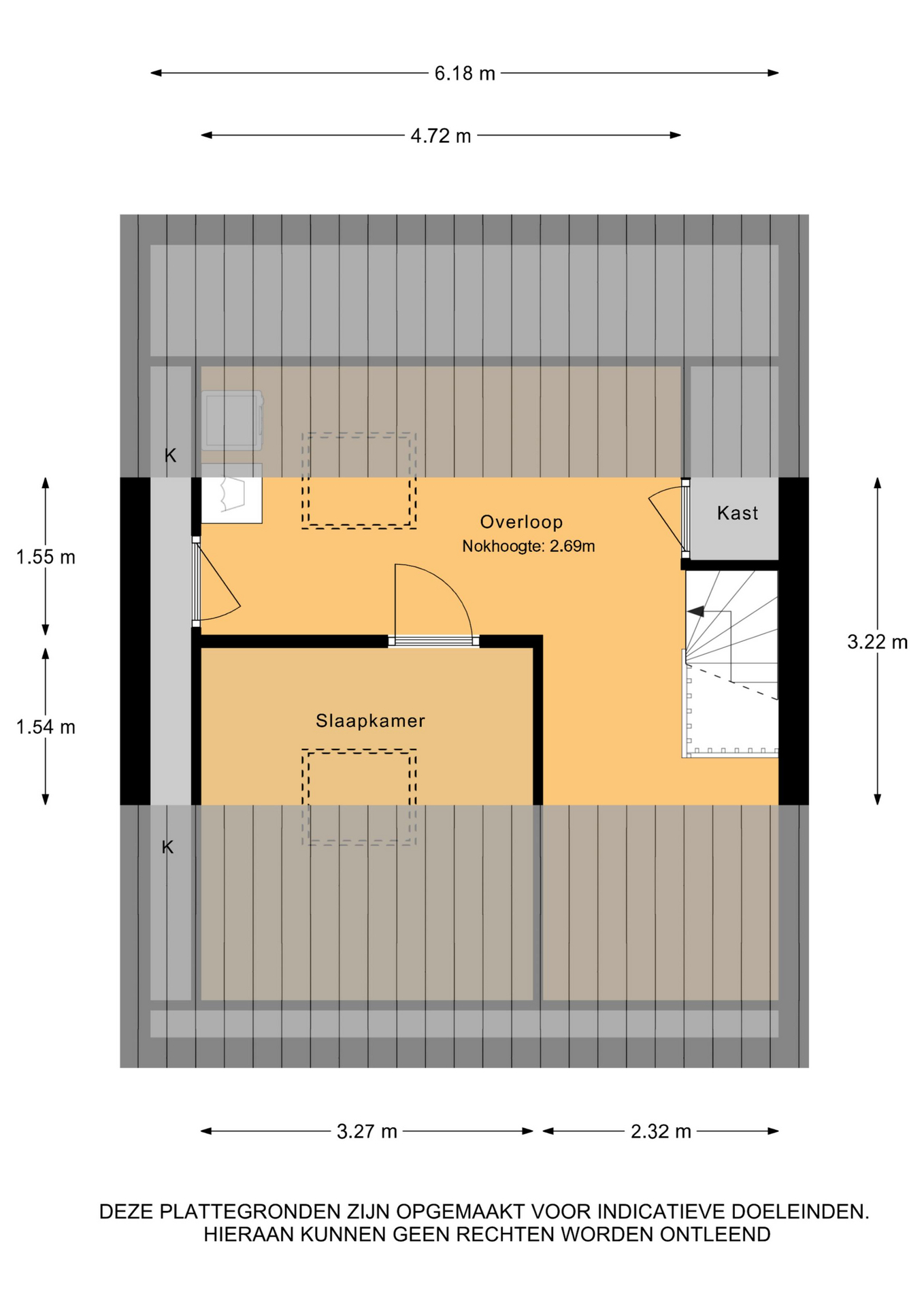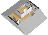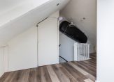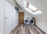 2e Verdieping: ruime voorzolder met dakraam en opstelling wasmachine aansluiting en droger – vaste kasten en één met opstelling CV – bergruimte achter de knieschotten – slaapkamer met dakraam.