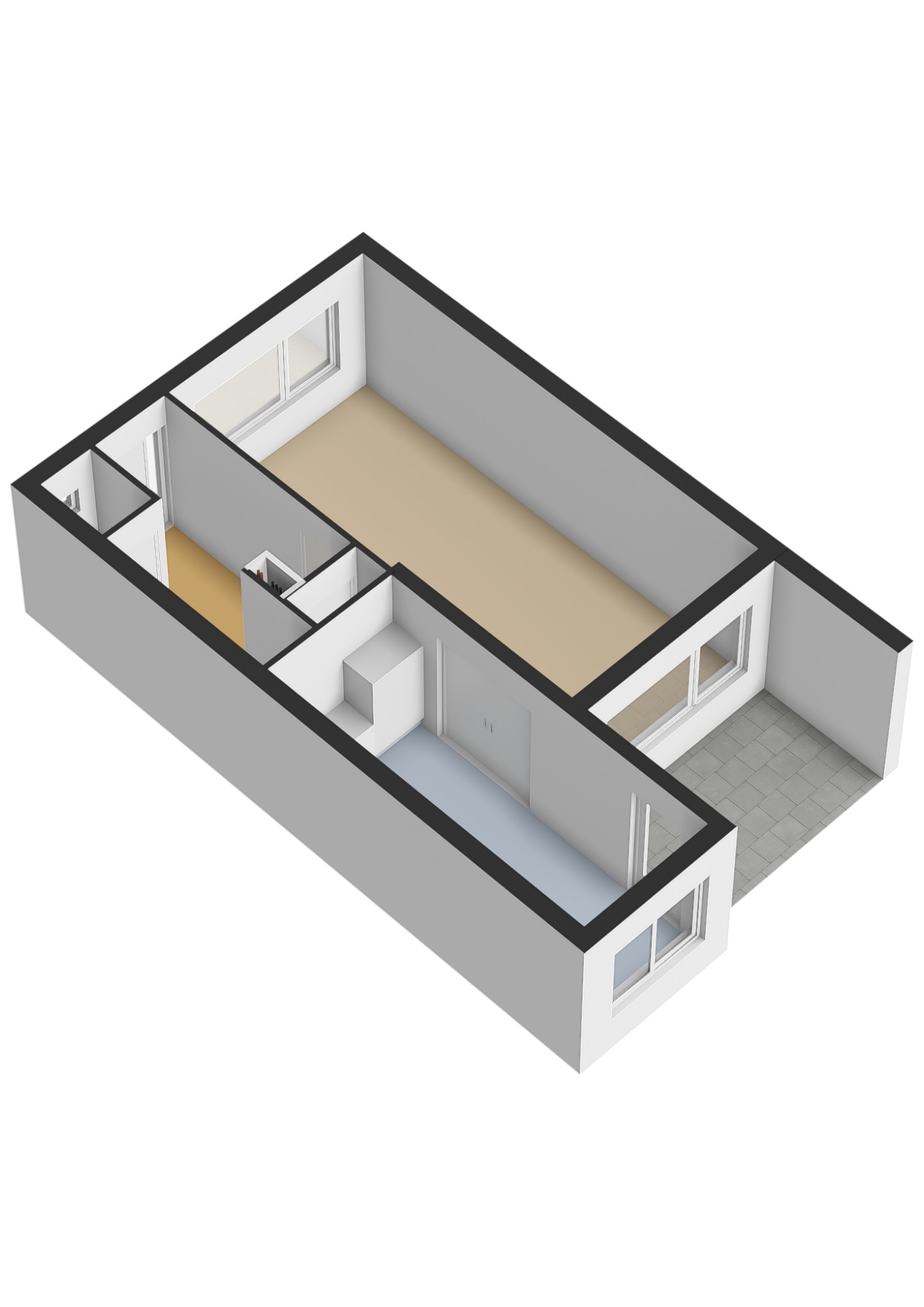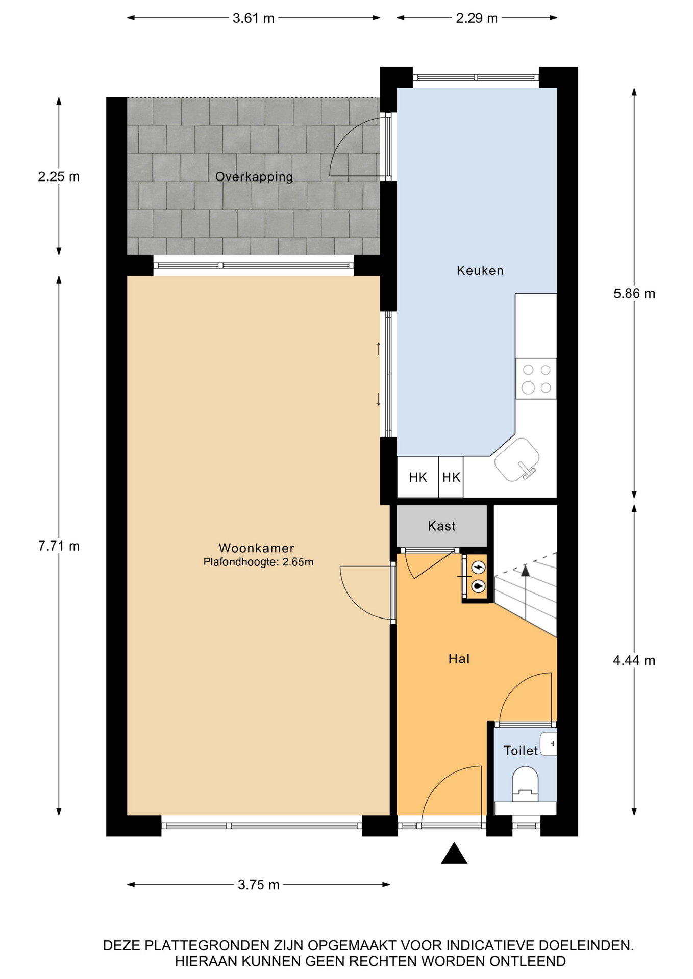 Begane grond: entree/ hal – toiletruimte met fonteintje – trapopgang – meterkast – vaste kast – woonkamer – keuken met hoekopstelling voorzien van combimagnetron – inductiekookplaat met afzuigkap, vaatwasser en koelkast – achteringang.