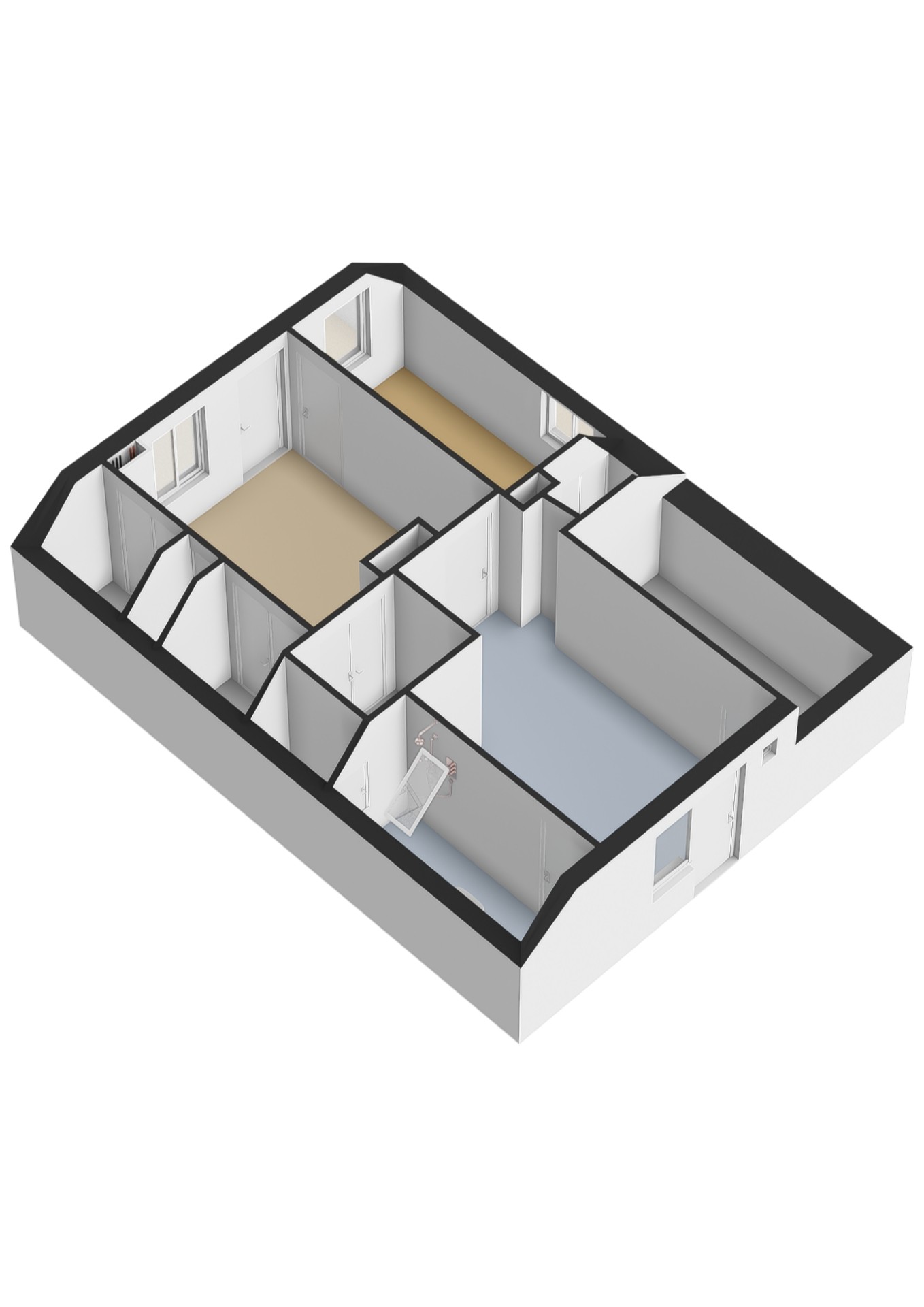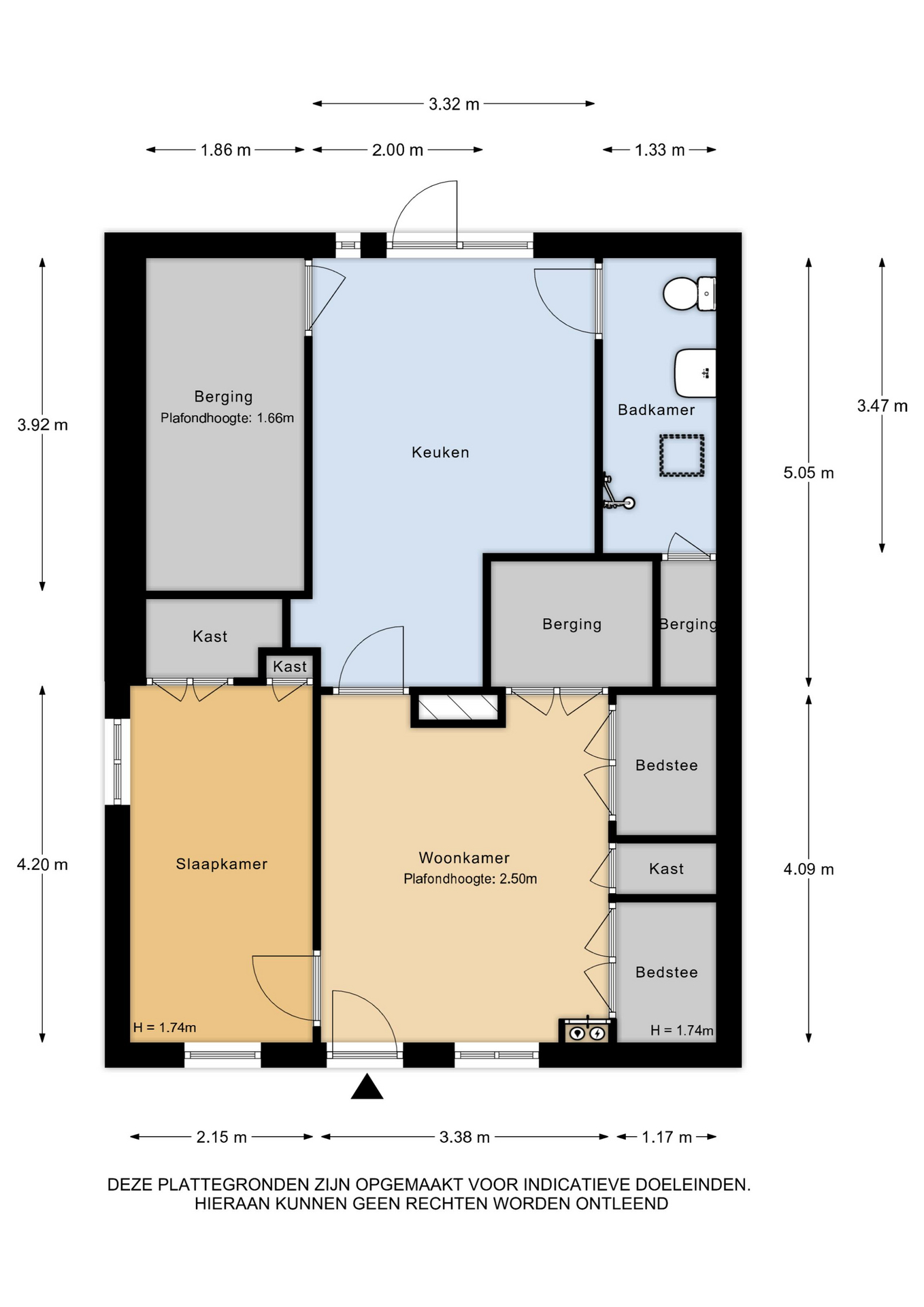 Begane grond: entree – woonkamer met twee originele bedsteden – vaste kast met kleine kelder – slaapkamer met vaste kast – voormalige deel – badkamer met toilet, wastafel en douchehoek – berging.