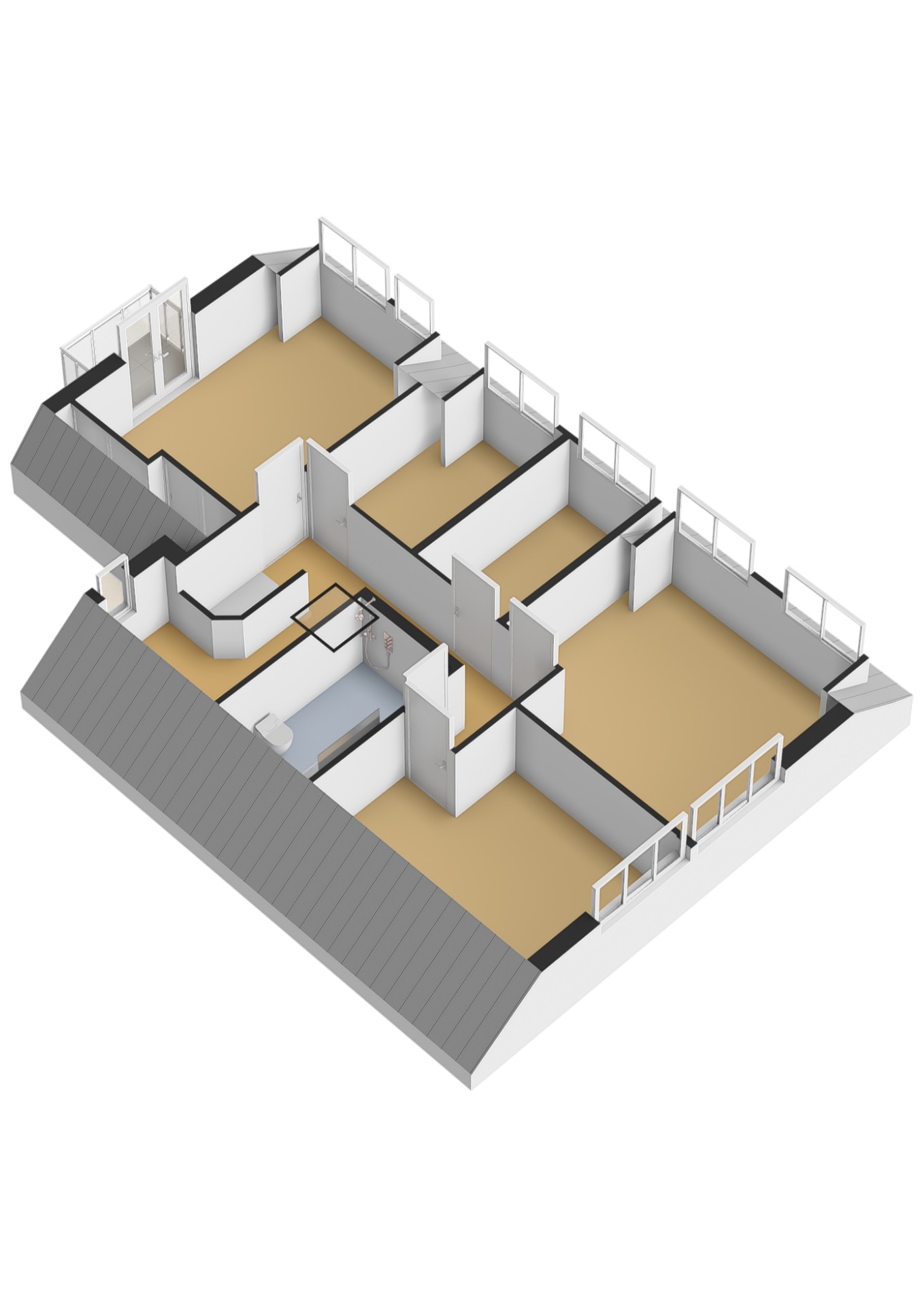 1e verdieping kunststof kozijnen (m.u.v. balkondeur) v.v. rolluiken en horren