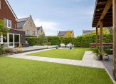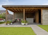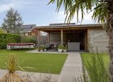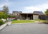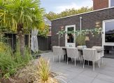 Buitenleven. De fraai aangelegde achtertuin vormt een verlengstuk van de woonkamer. De royale overkapping zorgt ervoor dat u het hele jaar door van het buitenleven kunt genieten: van zwoele zomeravonden tot knusse herfstdagen.