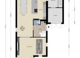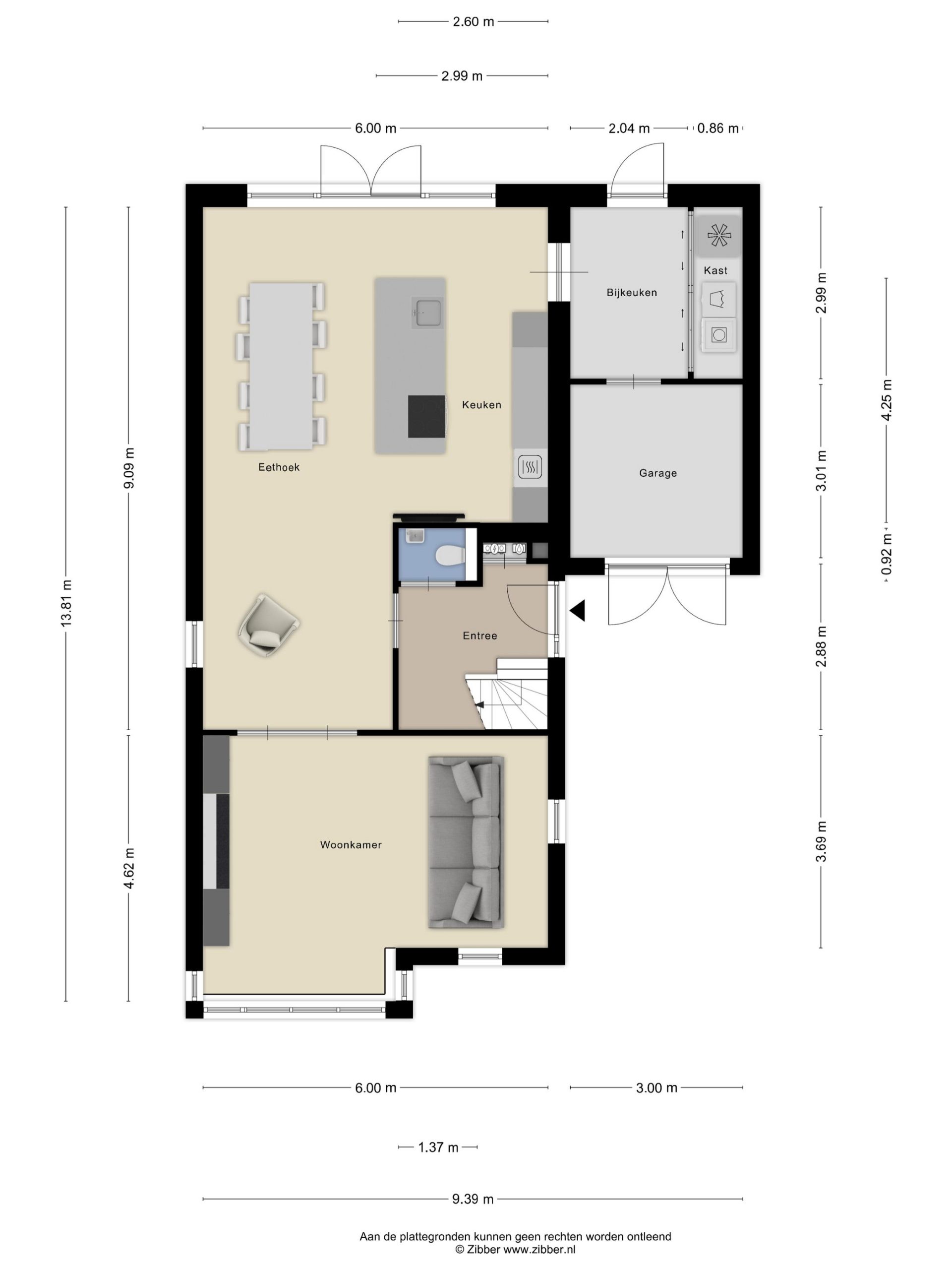 – bijkeuken met kastenwand, wasmachine aansluiting en tuindeur;