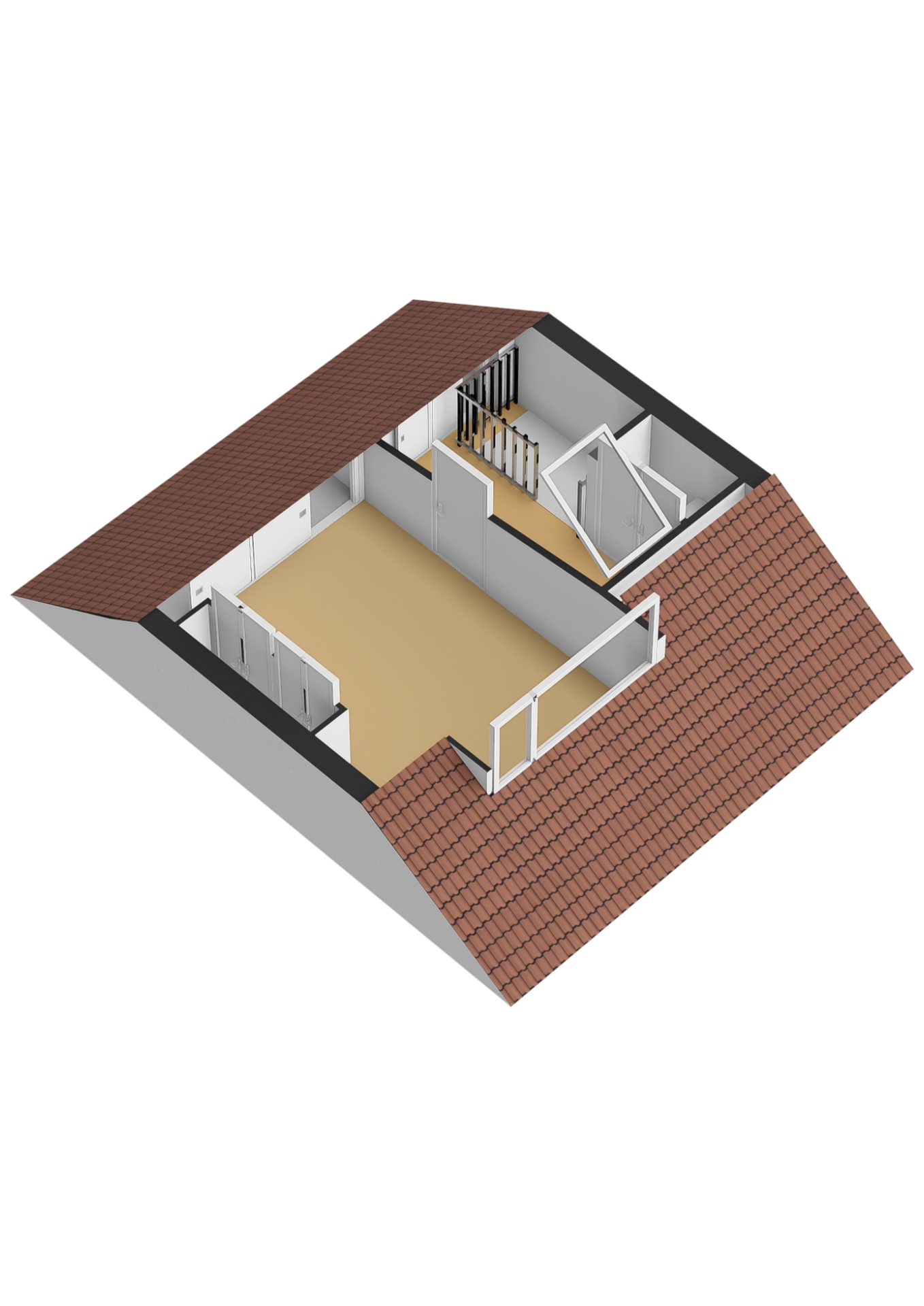 Voorzolder met diverse bergruimte, opstelplaats van de C.V. ketel en de aansluitpunten voor wasmachine/droger. 4e slaapkamer met dakkapel aan de achterzijde en eveneens diverse bergruimte.