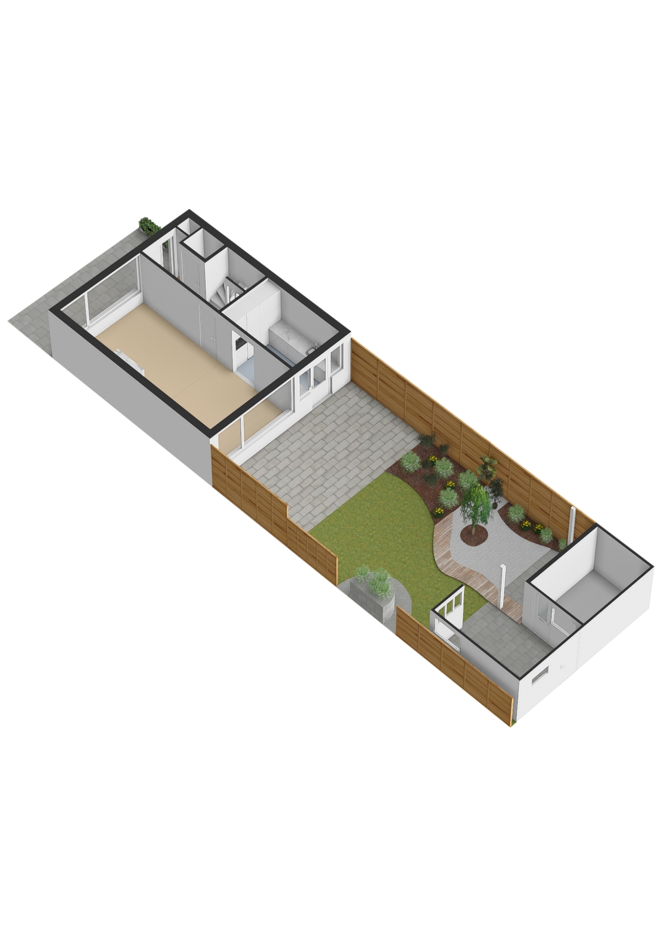 De achtertuin is verrassend diep en sfeervol aangelegd met een combinatie van groen en bestrating. De tuin biedt veel privacy en heeft meerdere fijne zitplekken. De overkapping is ingericht als comfortabele loungehoek, waardoor u hier vrijwel het hele jaar door heerlijk kunt zitten. Achter in de tuin bevindt zich een vrijstaande berging, ideaal voor fietsen en opslag.
