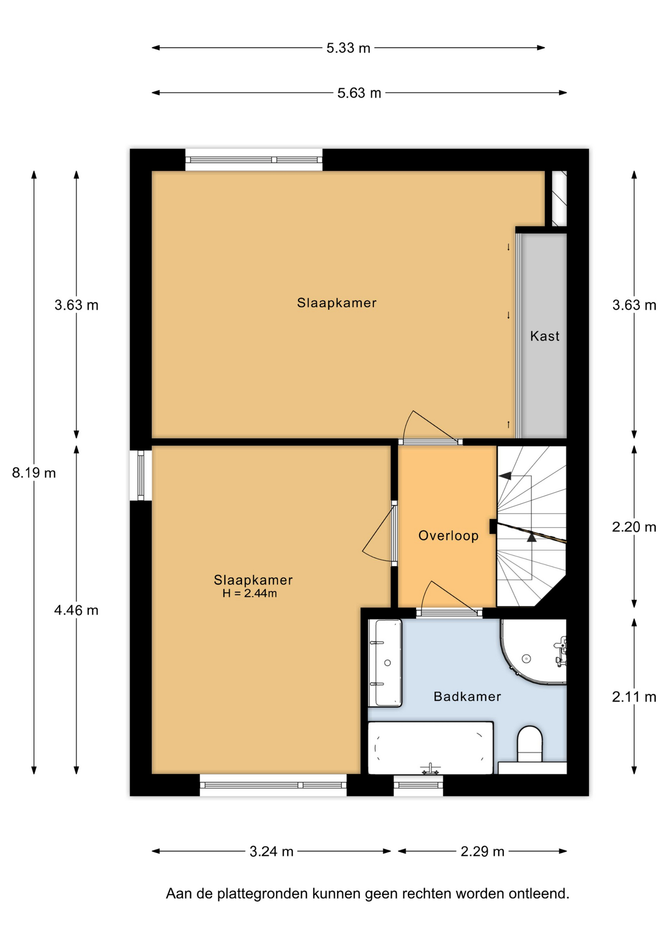 Op de eerste verdieping bevinden zich twee ruime slaapkamers, beide met veel licht en een goede indeling. De grootste slaapkamer strekt zich uit over de volledige breedte van de woning en beschikt over een vaste kast. De tweede slaapkamer ligt aan de voorzijde. De moderne badkamer (2019) is compleet afgewerkt in een frisse stijl en voorzien van een ligbad, aparte douche, wastafel, 2e toilet en raam voor extra natuurlijke ventilatie. Vaste trap naar de 2e verdieping.