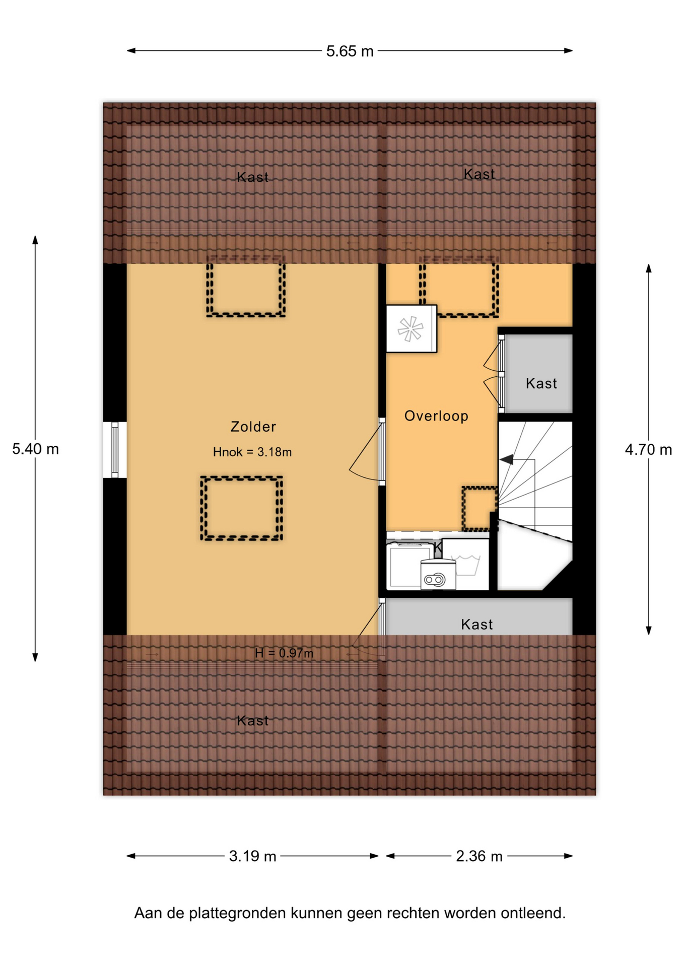 Voorzolder met diverse bergruimte en de aansluitpunten voor wasmachine/droger. Opstelplaats van de C.V. ketel en 3e zeer royale slaap/hobbykamer met een nokhoogte van 3,18 meter en eveneens diverse bergruimte.