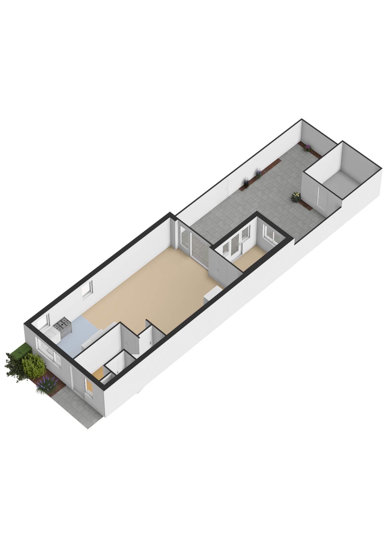 De achtertuin is onderhoudsvriendelijk aangelegd met fraai straatwerk en borders. Met de zonnige ligging op het zuid/westen en royale diepte is er altijd wel een plek in de zon of schaduw te vinden. De tuin biedt volop privacy en is ideaal voor gezinnen. De tuin is bovendien via een poort aan de zijkant van de woning bereikbaar, Achterin de tuin bevindt zich de vrijstaande berging (ca. 9 m²).