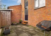 De achtertuin is gelegen op het zuid/oosten en is onderhoudsvriendelijk aangelegd. Vrijstaande houten berging.
