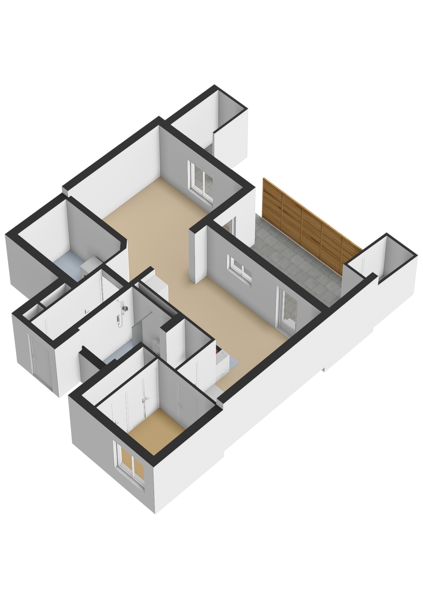 Via de eigen entree komt u binnen in de hal met garderoberuimte en meterkast. Vanuit de hal zijn de verschillende vertrekken bereikbaar. Aan de linkerzijde van de hal bevindt zich de wasruimte/berging. De woonkamer bevindt zich aan de achterzijde van de woning en is onderverdeeld in een zitkamer en eetkamer met open keuken. Rechte keuken voorzien van diverse inbouwapparatuur zoals een inductie kookplaat, afzuigkap, Quooker, vaatwasser, oven en koel/vriescombinatie. Op het lager niveau de 1e slaapkamer met vaste kast en de badkamer, welke praktisch is ingericht met een inloopdouche, toilet en wastafelmeubel. De slaapkamer op de verdieping is eveneens aan de voorzijde van de woning en beschikt over een vaste kast met de opstelplaats van de C.V. ketel.
