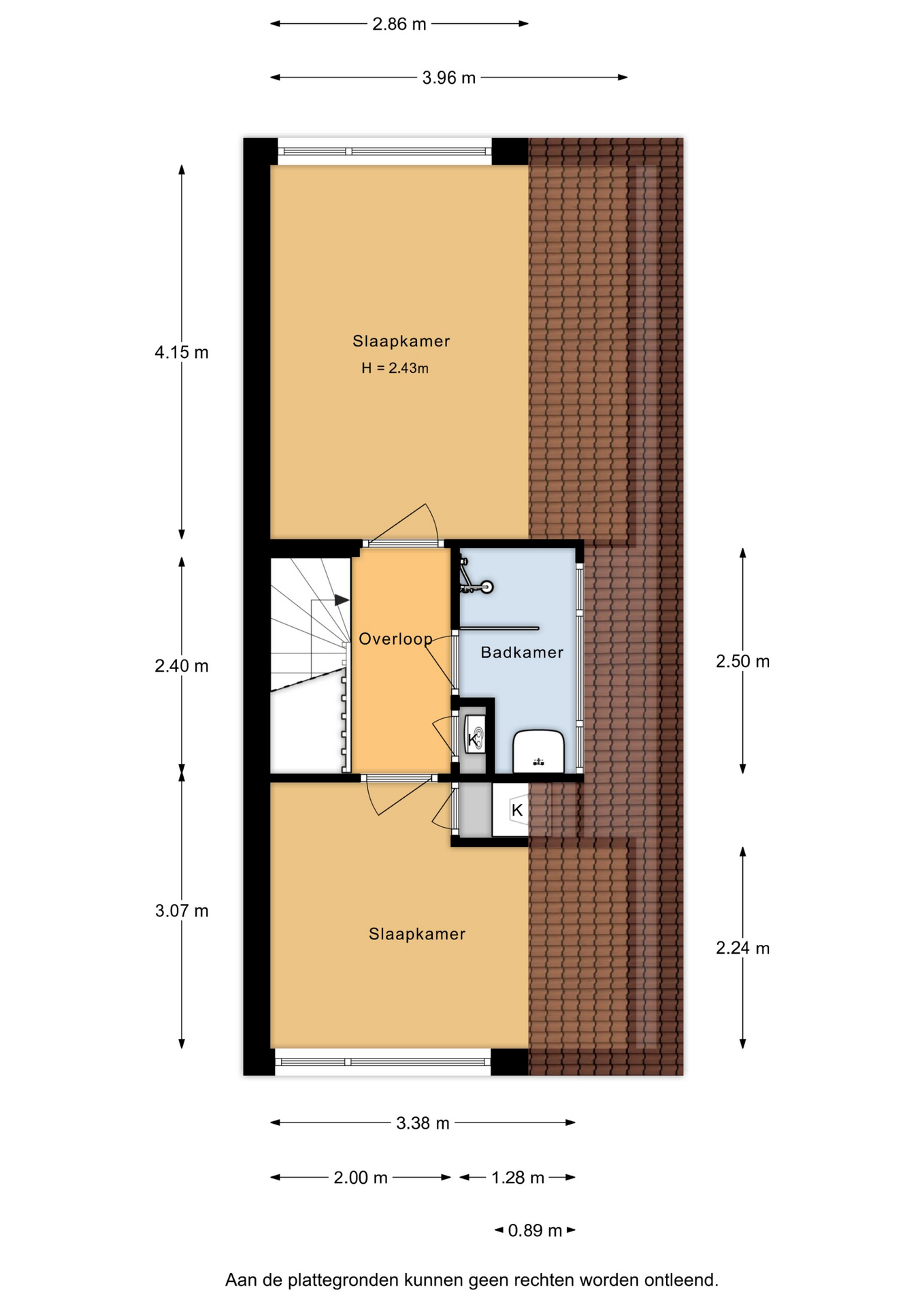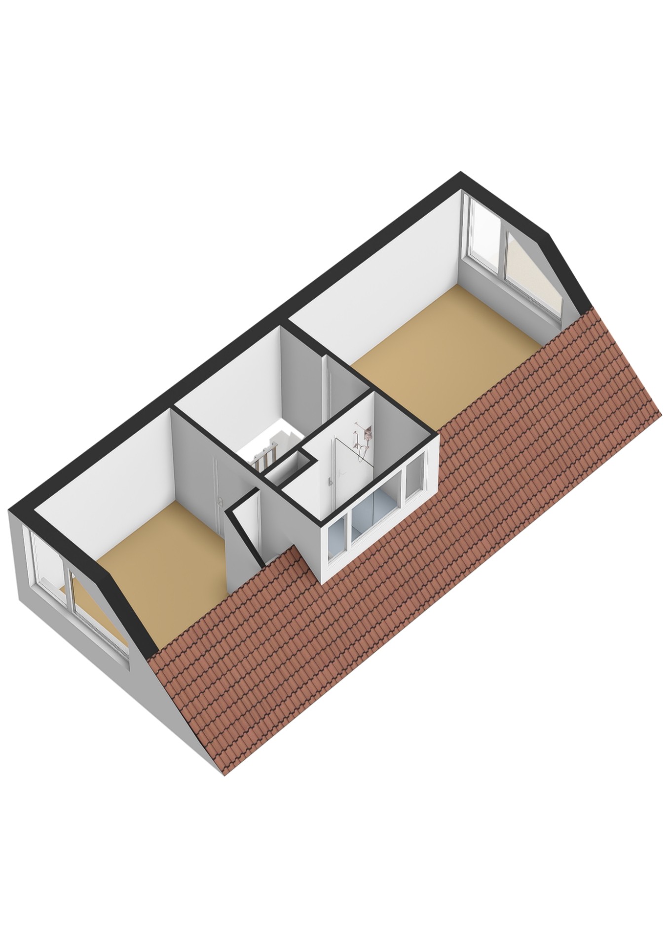 Op deze bovenste verdieping bevinden zich twee slaapkamers van goed formaat, beide met een prettige lichtinval en een praktische indeling. Overloop met toegang tot de badkamer met dakkapel. De badkamer is uitgerust met een douche, handdoekradiator en wastafelmeubel. Separate ruimte met de opstelplaats van de C.V. ketel.