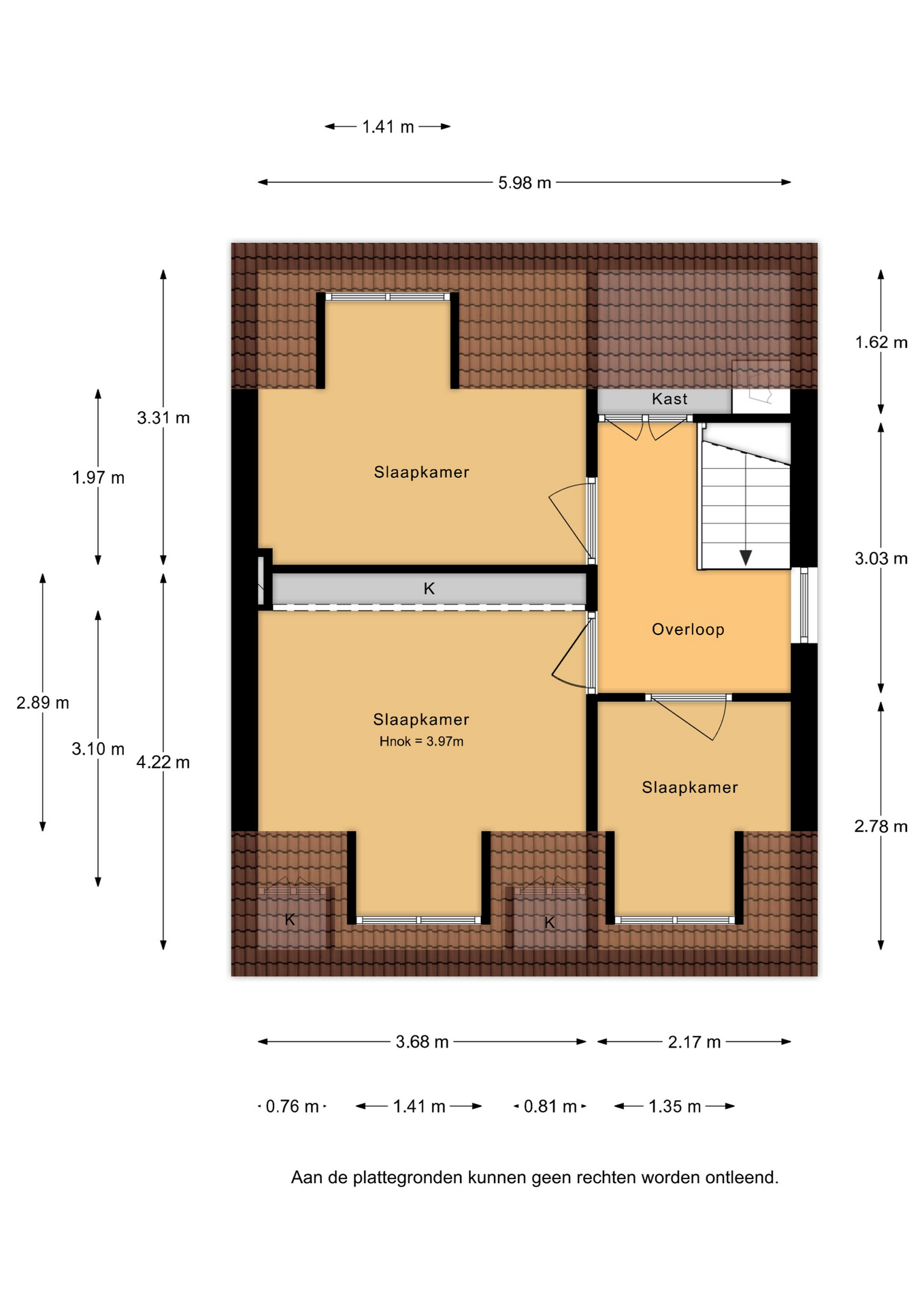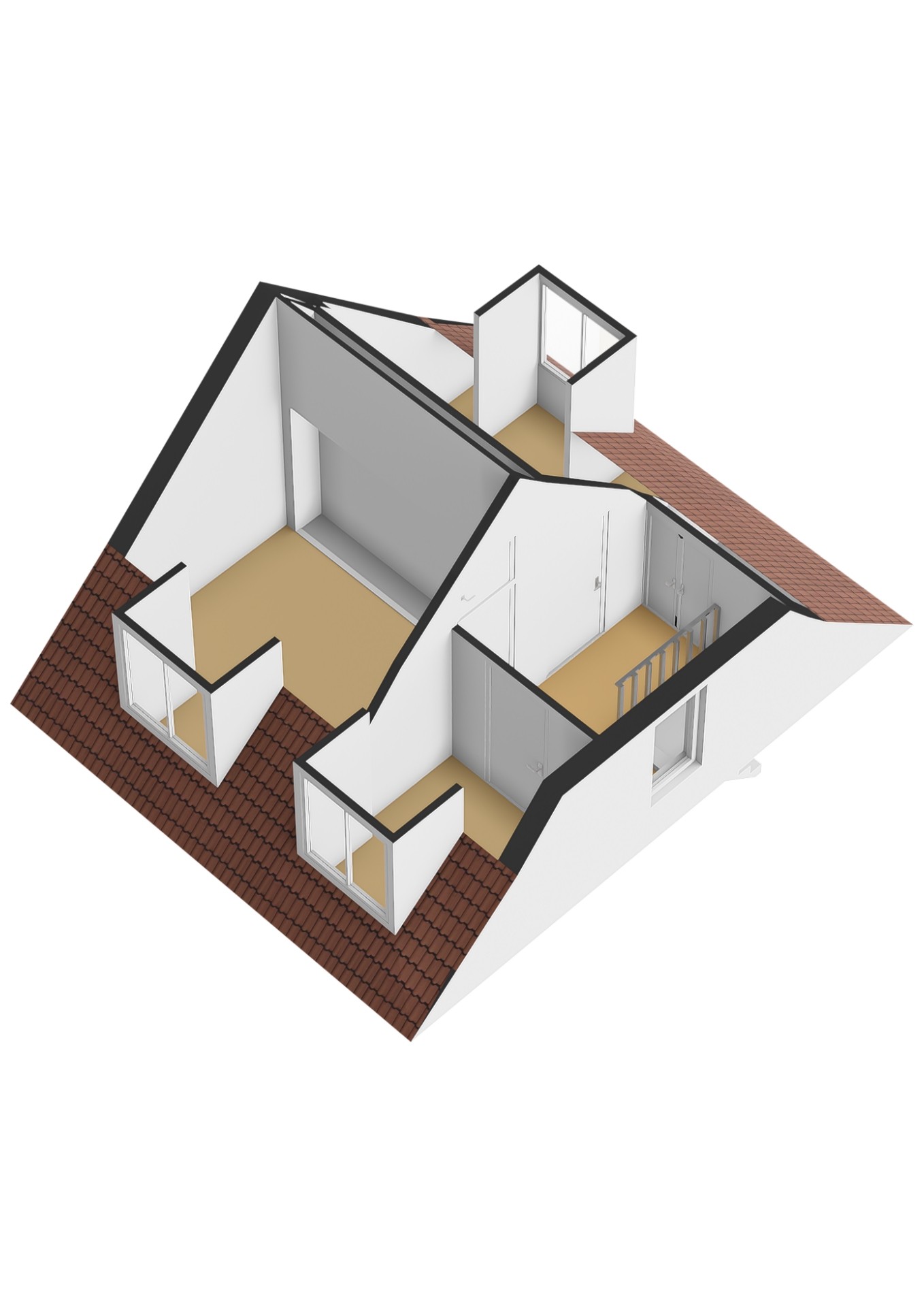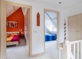Overloop. 3 prima slaapkamers, elk met een prettige lichtinval en speelse indeling. Diverse bergruimte en vliering.
