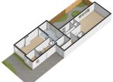 Aangebouwd aan de woning aan de achterzijde en zowel van binnenuit als via de eigen buitenentree bereikbaar het multifunctionele achterhuis. Deze ruimte is ideaal als werk/hobbyruimte of om te gebruiken als extra woonruimte verdeeld over twee gebruikslagen. Het achterhuis heeft op dit moment een laag die uit een grote werk/hobbykamer bestaat van circa 45 m2 met toilet en bergruimte. De andere laag is ingedeeld met twee slaap/werkkamers en eveneens diverse bergruimte. Zoals gezegd kan deze ruimte naar eigen inzicht worden gebruikt voor werkdoeleinden of om gewoon een lekker groot woonoppervlak te hebben met maar liefst 9 kamers in zijn totaliteit.
