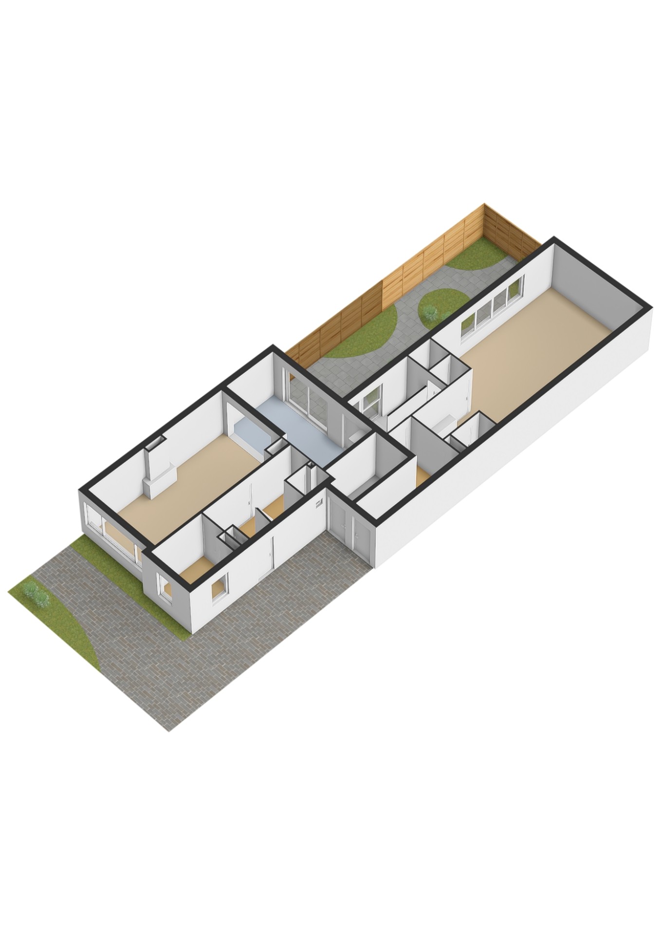 Entree aan de zijzijde via de oprit met plaats voor twee auto’s. Ingang van de woning, berging en separaat voor het achterhuis. Hal met meterkast, toegang tot de kelder, toilet en trapopgang naar de verdieping. Eveneens vanuit de hal komt u in de werk/slaapkamer aan de voorzijde en de sfeervolle woonkamer met semi open keuken aan de achterzijde. De woonkamer is heerlijk licht door de grote ramen en biedt volop ruimte voor een comfortabele zithoek en eettafel. De royale keuken is voorzien van diverse inbouwapparatuur, waaronder een gaskookplaat, oven/magnetron en een industriële afzuigkap. Vanuit de keuken heeft u directe toegang tot de achtertuin. Vanuit hier ook doorloop naar het achterhuis.