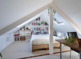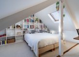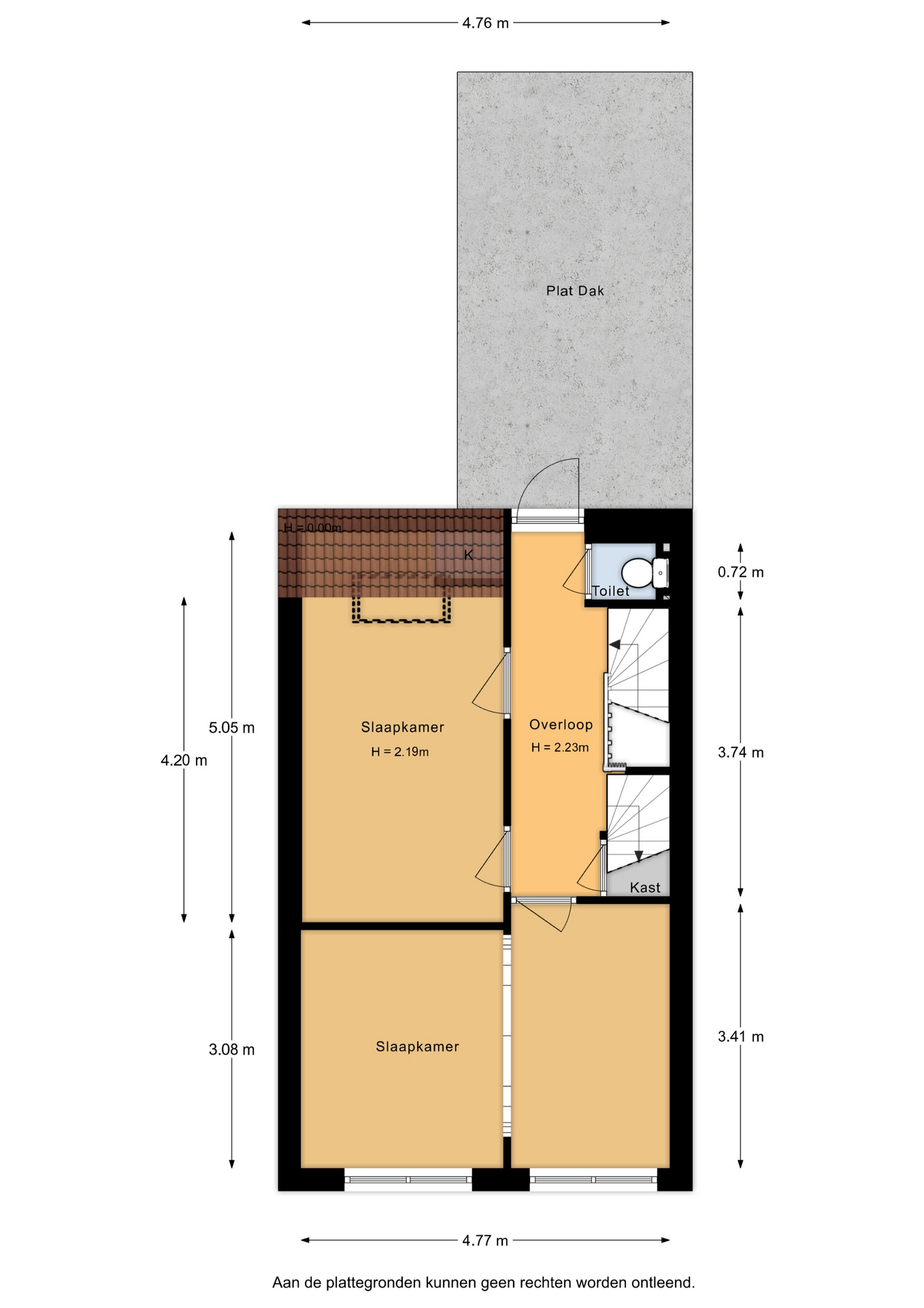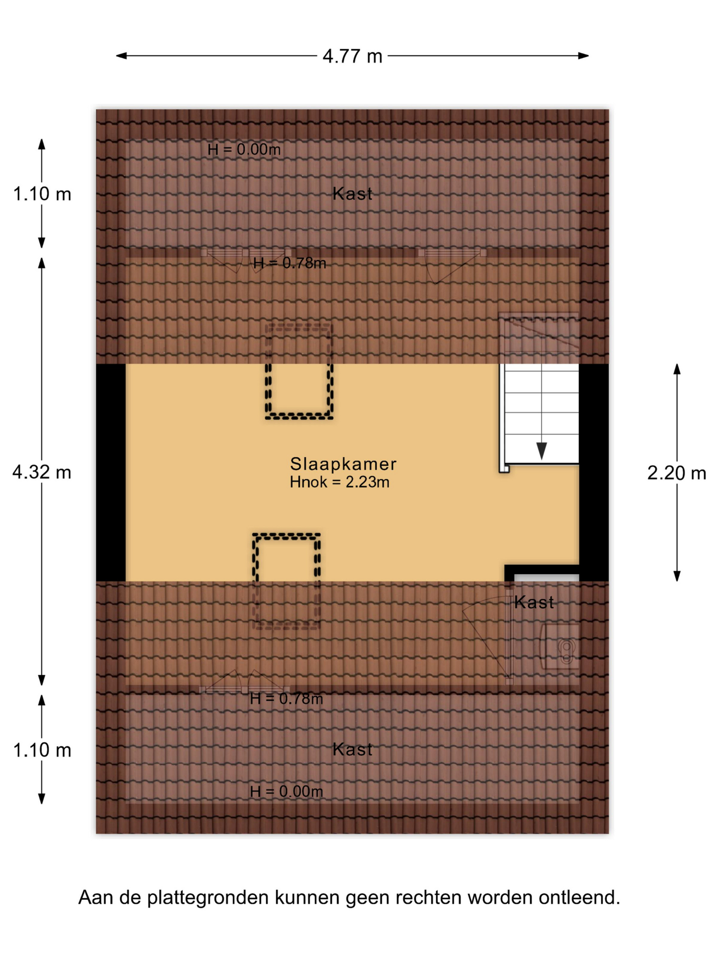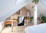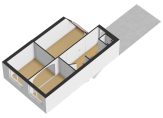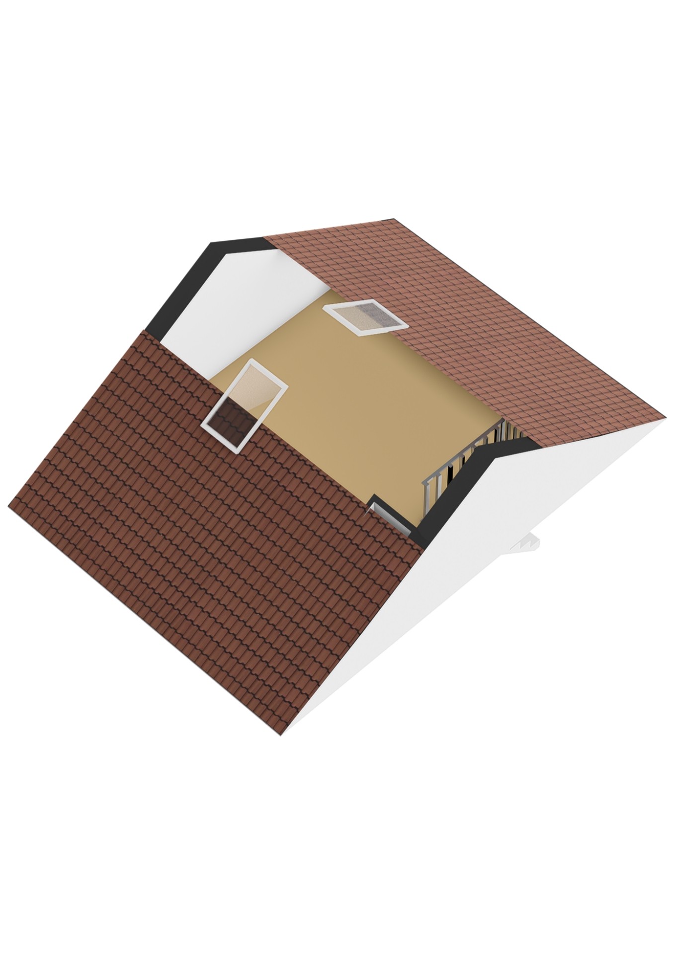 De tweede verdieping biedt een ruime open derde slaapkamer met twee dakramen en bergruimte achter de knieschotten. Door de nokhoogte van 2,23 meter is dit een volwaardige verdieping die uitstekend dienst kan doen als slaap-, werk- of hobbyruimte.
