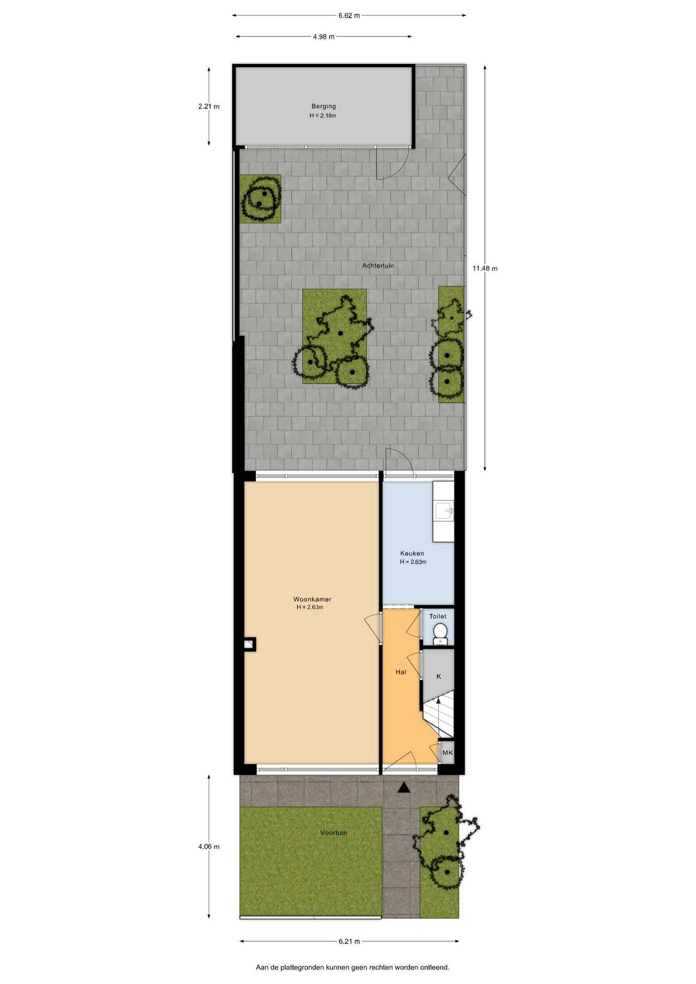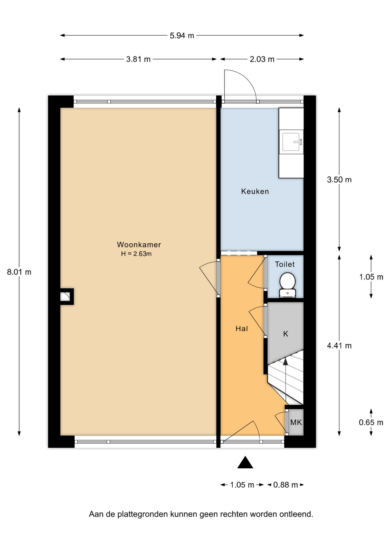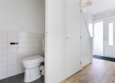 Via de voortuin betreedt u de woning. In de hal bevinden zich de meterkast, het toilet en de trapkast. Aan de linkerzijde ligt de doorzonwoonkamer, die dankzij de grote raampartijen aan zowel de voor- als achterzijde prettig licht is.