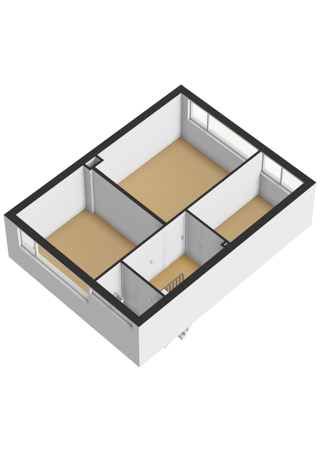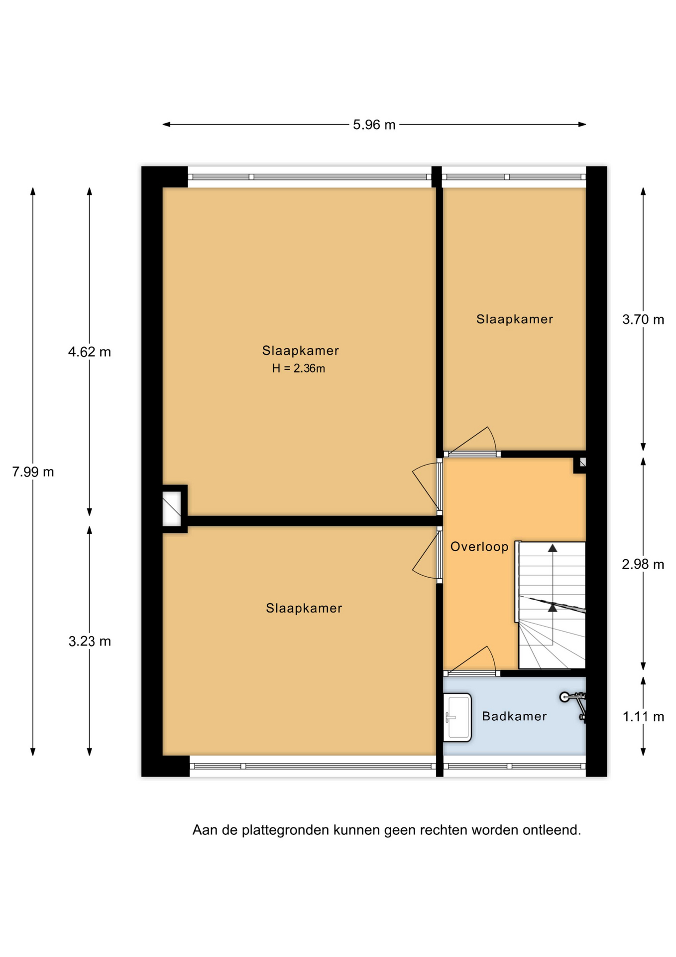 De eerste verdieping bestaat uit een overloop, drie slaapkamers en de badkamer. De slaapkamers variëren in afmeting, maar bieden alle drie voldoende ruimte voor een bed, kast en bureau. De badkamer is uitgerust met een douche en wastafel en is compact maar functioneel. Vaste trap naar de 2e verdieping.