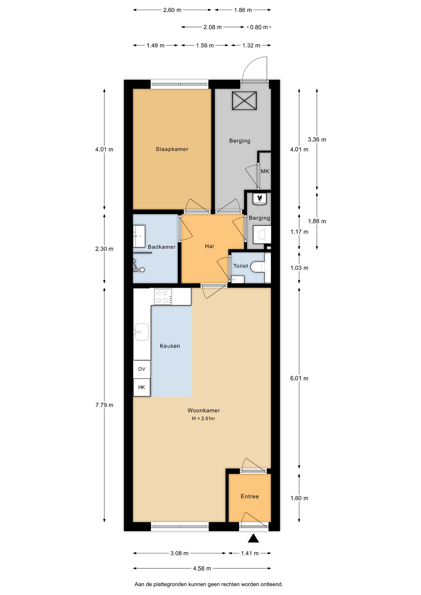 -Woonoppervlak 59 m2 plus 7 m2 overige inpandige ruimte;