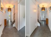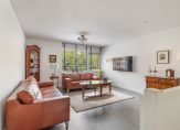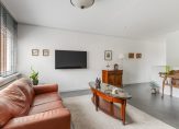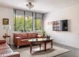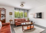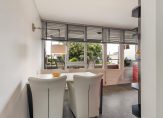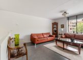 Ruime en lichte woonkamer met zicht op de binnentuin. Tevens toegang tot een kast met opstelling van de cv-combiketel.