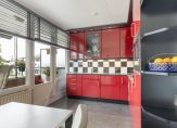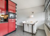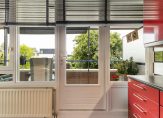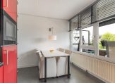 De open keuken aan de voorzijde is modern ingericht en voorzien van Siemens-inbouwapparatuur: inductiekookplaat, afzuigschouw, koelkast, vriezer, vaatwasser en spoelbak. Via de loopdeur bereikt u het zonnige balkon met vrij uitzicht.