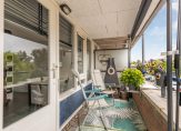 De woning beschikt over een eigen entree op het besloten binnenplein van het complex en is verdeeld over de begane grond en eerste verdieping. De indeling is praktisch en comfortabel: een lichte woonkamer met open keuken, een ruim balkon op het westen, twee goede slaapkamers, een moderne badkamer en een eigen berging in het souterrain.