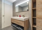 Entree met hal en meterkast. Twee slaapkamers, waarvan één voorzien van vaste bergkast met aansluiting voor wasmachine en droger. De luxe badkamer is uitgerust met een toilet, inloopdouche en dubbele wastafel in meubel.