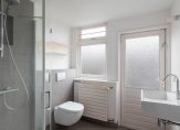 Overloop met handige bergkast met de aansluitpunten voor wasmachine en/of droger. Loopdeur naar het dakterras (14m2) en de badkamer met douche, toilet en wastafel. Met twee slaapkamers aan de voorkant en een aan de achterzijde van de woning is er ook voldoende ruimte voor stellen met kinderen. De bergzolder is via de vlizotrap vanaf de overloop bereikbaar en met een vaste trap en dakkapel aan te passen tot woonverdieping.