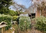 Rondom de woning ligt een ruime tuin met een natuurlijke en groene uitstraling. De tuin is speels ingedeeld en beschikt over meerdere terrassen en zitplekken. Door de ligging en beplanting is er een goede mate van privacy aanwezig. Aan de achterzijde van de woning bevindt zich een terras direct grenzend aan de woonkamer. Daarnaast beschikt de woning over een overdekte veranda met gemetselde bogen. De combinatie van groen, water en buitenruimtes draagt bij aan het landelijke karakter van de woning. Deze buitenruimte dient net als de woning te worden gemoderniseerd.