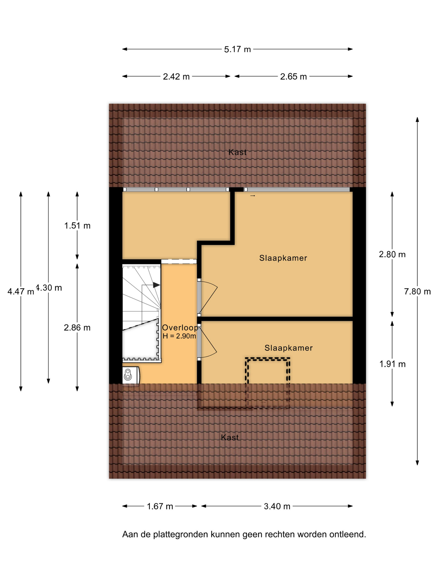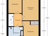 Overloop met diverse bergruimten en de opstelplaats van de C.V. ketel. Twee slaapkamers en dakkapel aan de achterzijde. De slaapkamers zijn eenvoudig samen te voegen tot 1 grote slaapkamer met de genoemde dakkapel.
