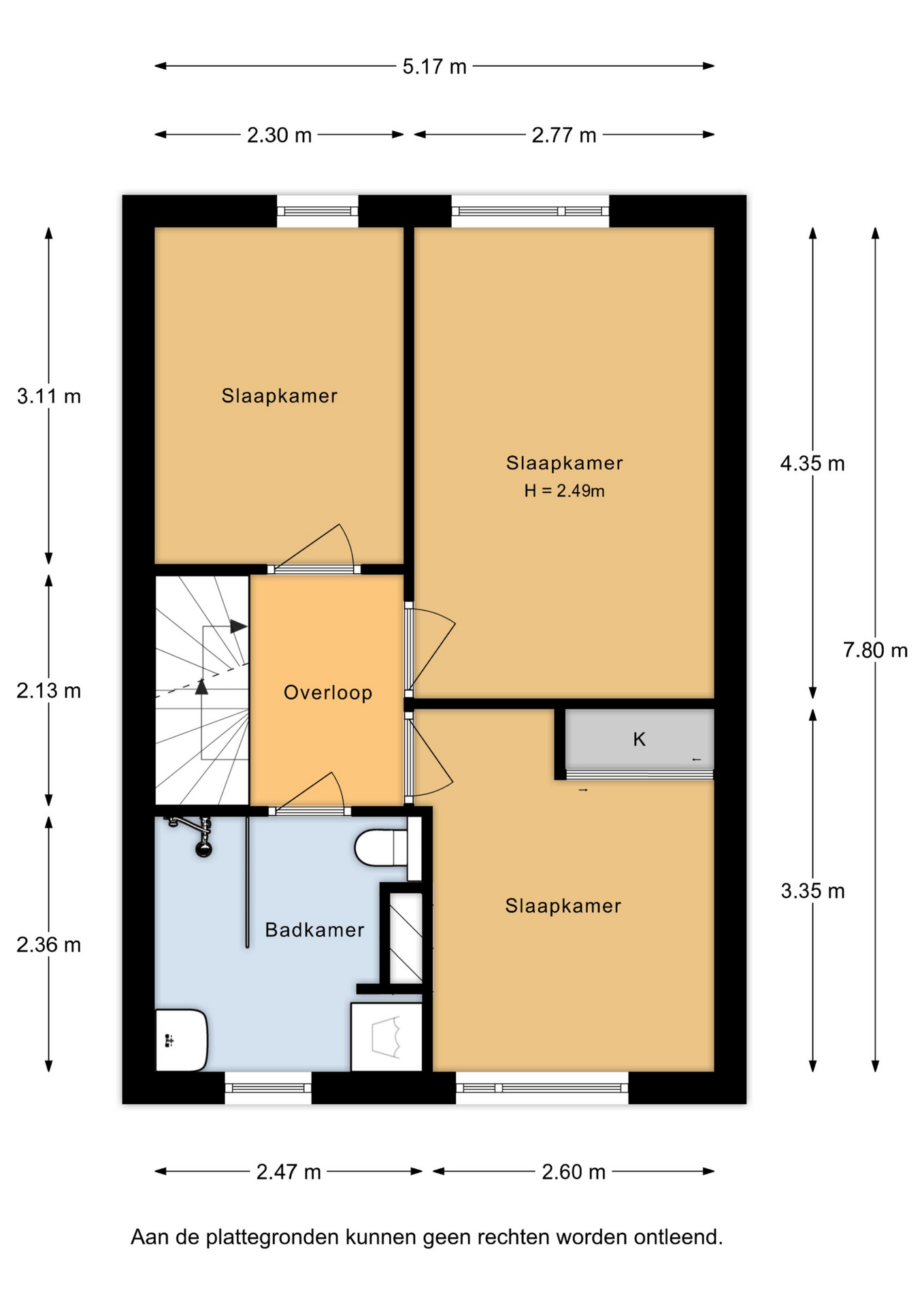 Overloop met vaste trap naar de 2e verdieping. Drie prima slaapkamers waarvan één is voorzien van een praktische vaste kast. De moderne badkamer is in 2019 vernieuwd en uitgevoerd met inloopdouche, 2e toilet, wastafel, handdoekradiator en opstelplaats voor de wasmachine.