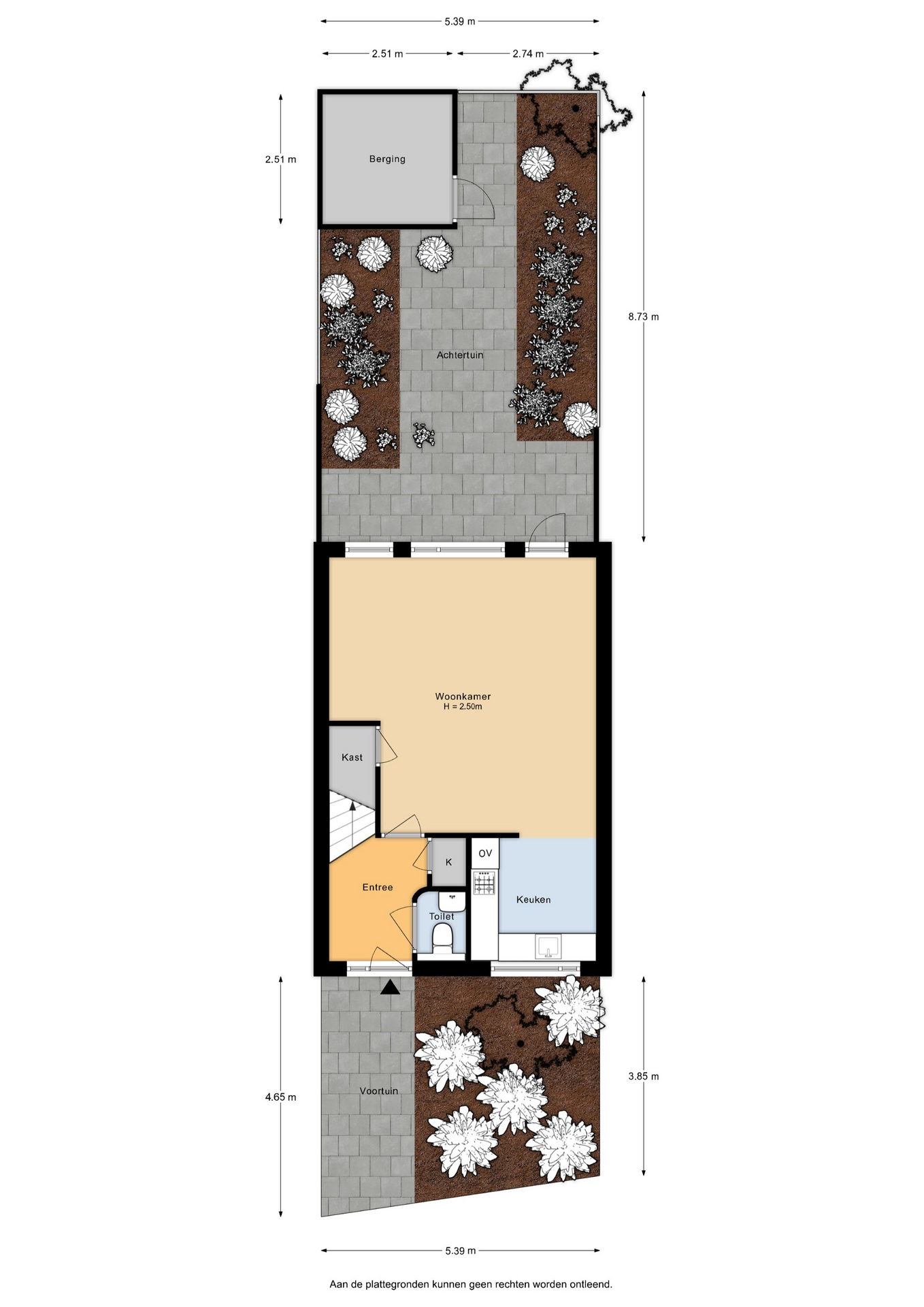 Entree via de voortuin. Hal met meterkast, toiletruimte, trapopgang naar de verdieping en toegang tot de tuingerichte woonkamer. Aan de voorzijde van de woning is de keuken gesitueerd. De keuken is voorzien van diverse inbouwapparatuur zoals een gaskookplaat, afzuigkap, oven, combimagnetron, en een vaatwasser. De woonkamer heeft een prettige lichtinval door de royale raampartijen en biedt toegagang tot de zonnige achtertuin op het zuid/westen met de vrijstaande stenen berging en het achterom.