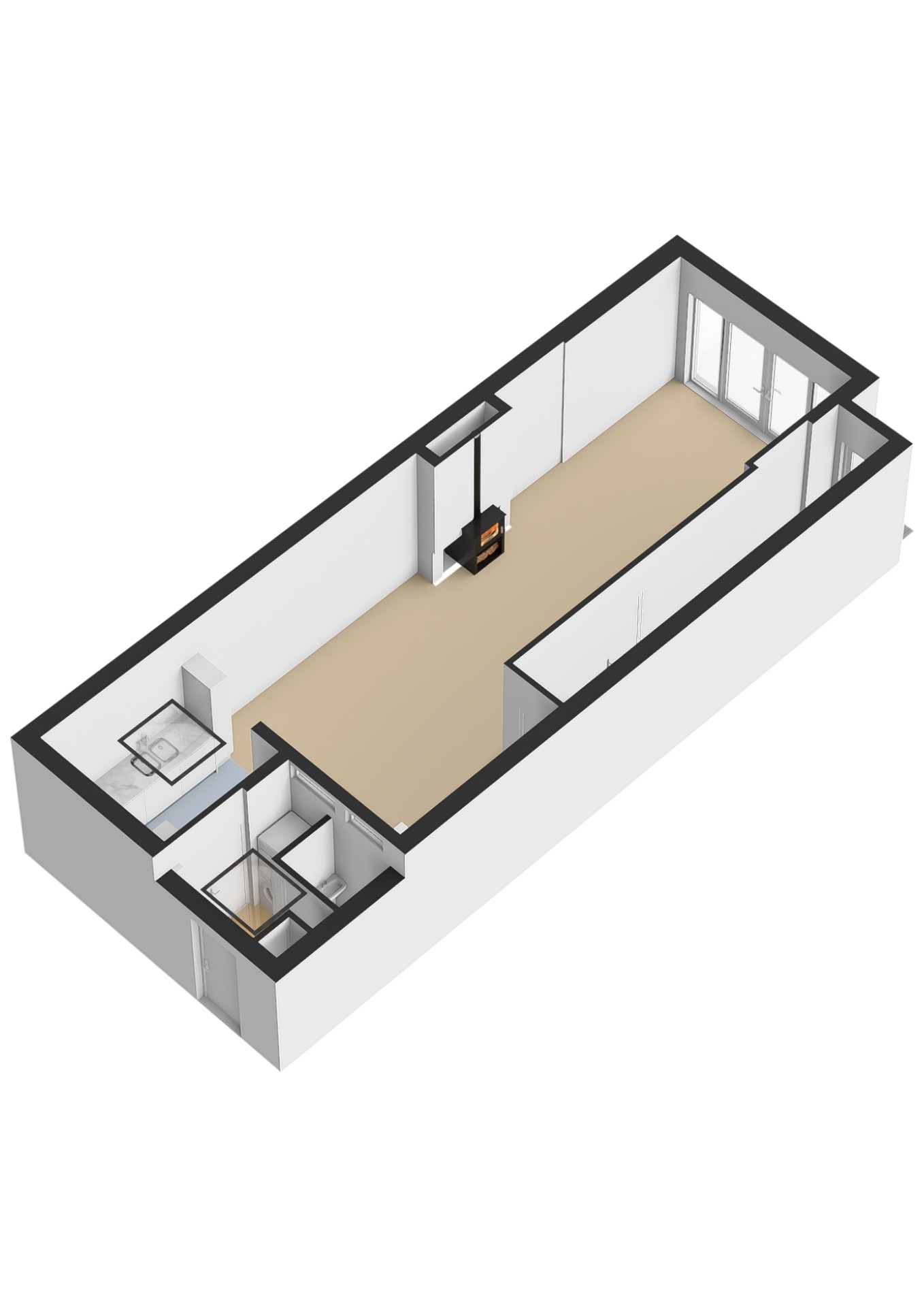 -Uitgebouwde woonkamer van 34m2;