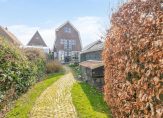 In de voortuin wordt de sfeer bepaald door twee leibomen, een beukenhaag en merendeels groenblijvende beplanting. Parkeren kan gemakkelijk op eigen terrein.