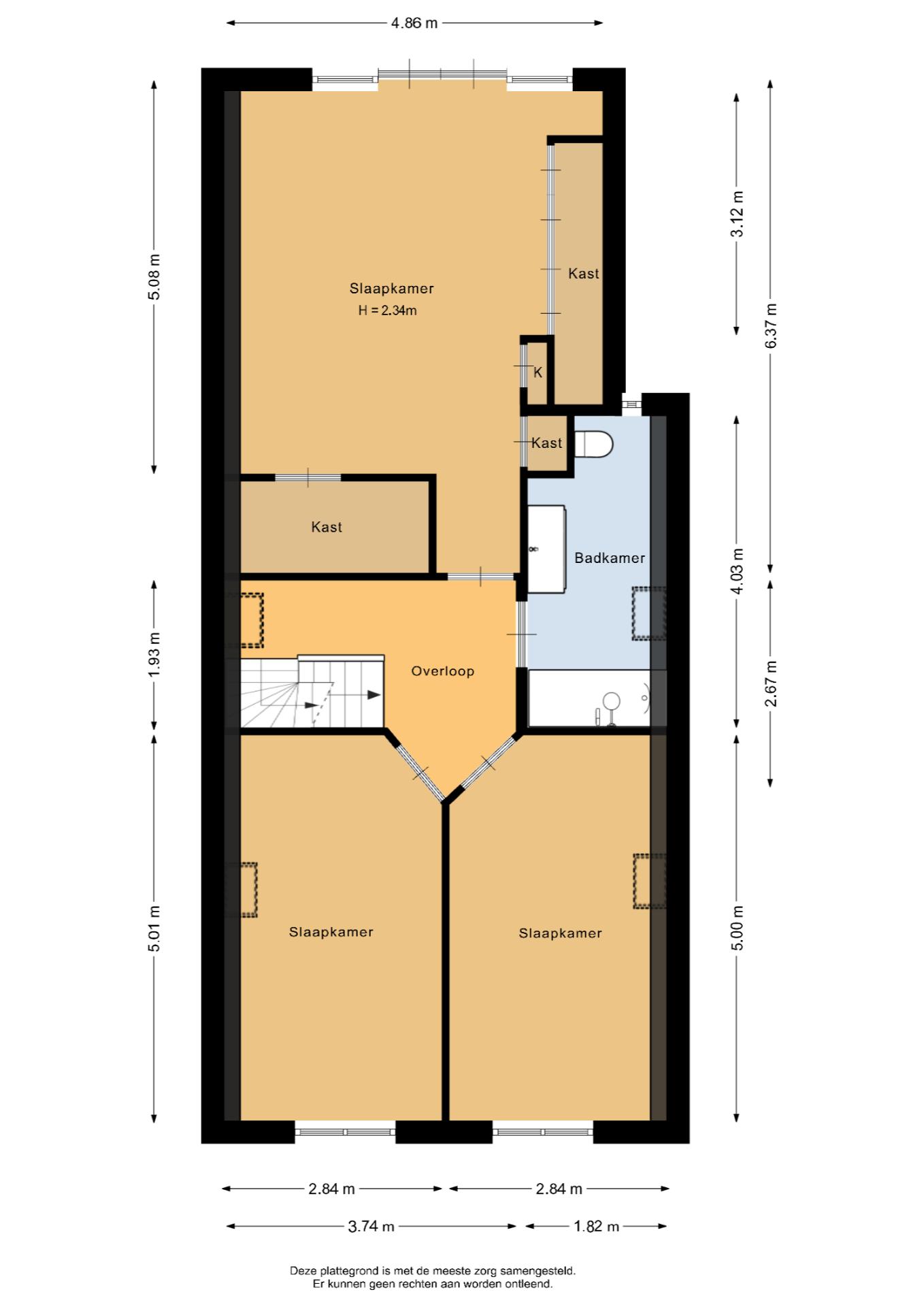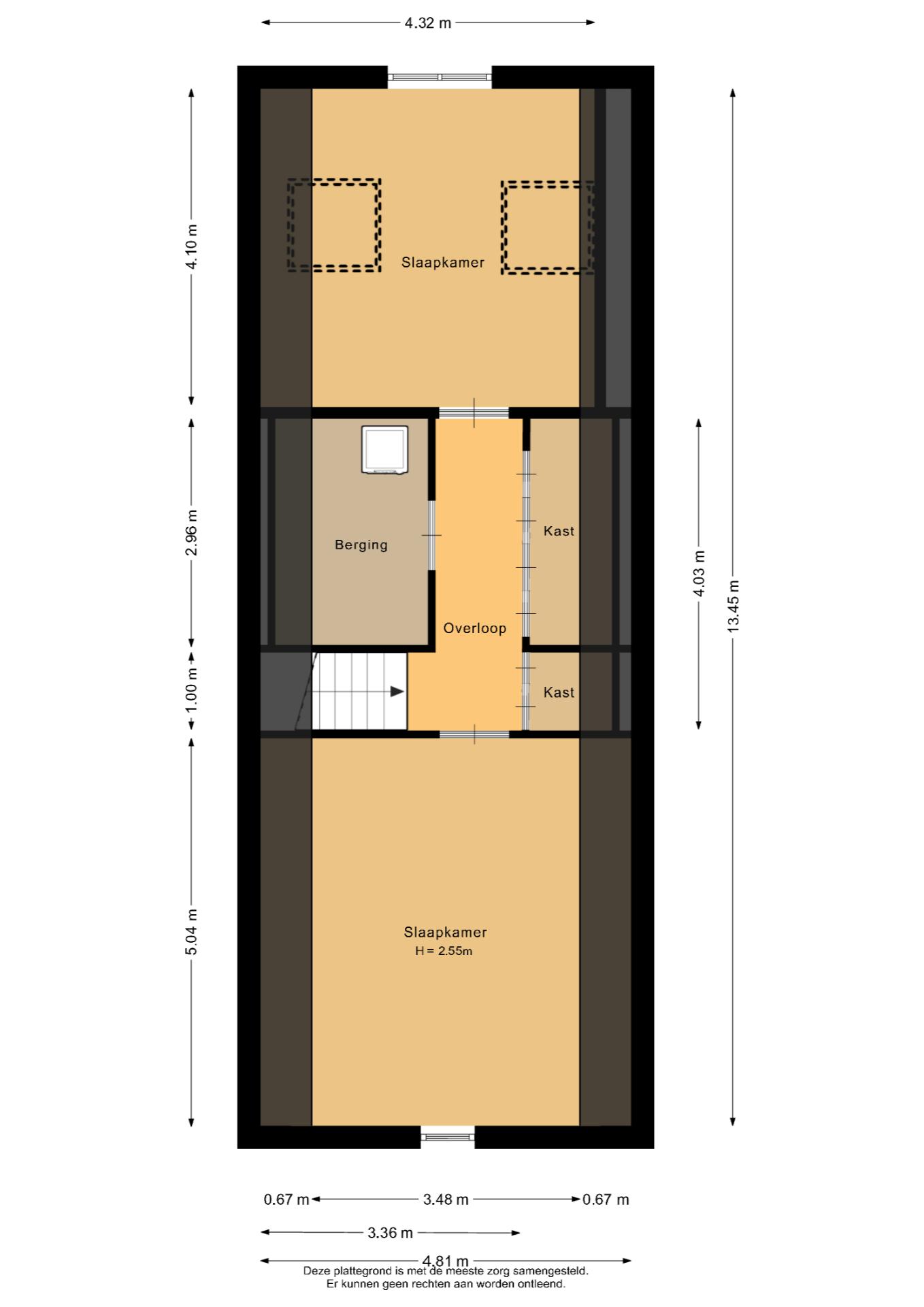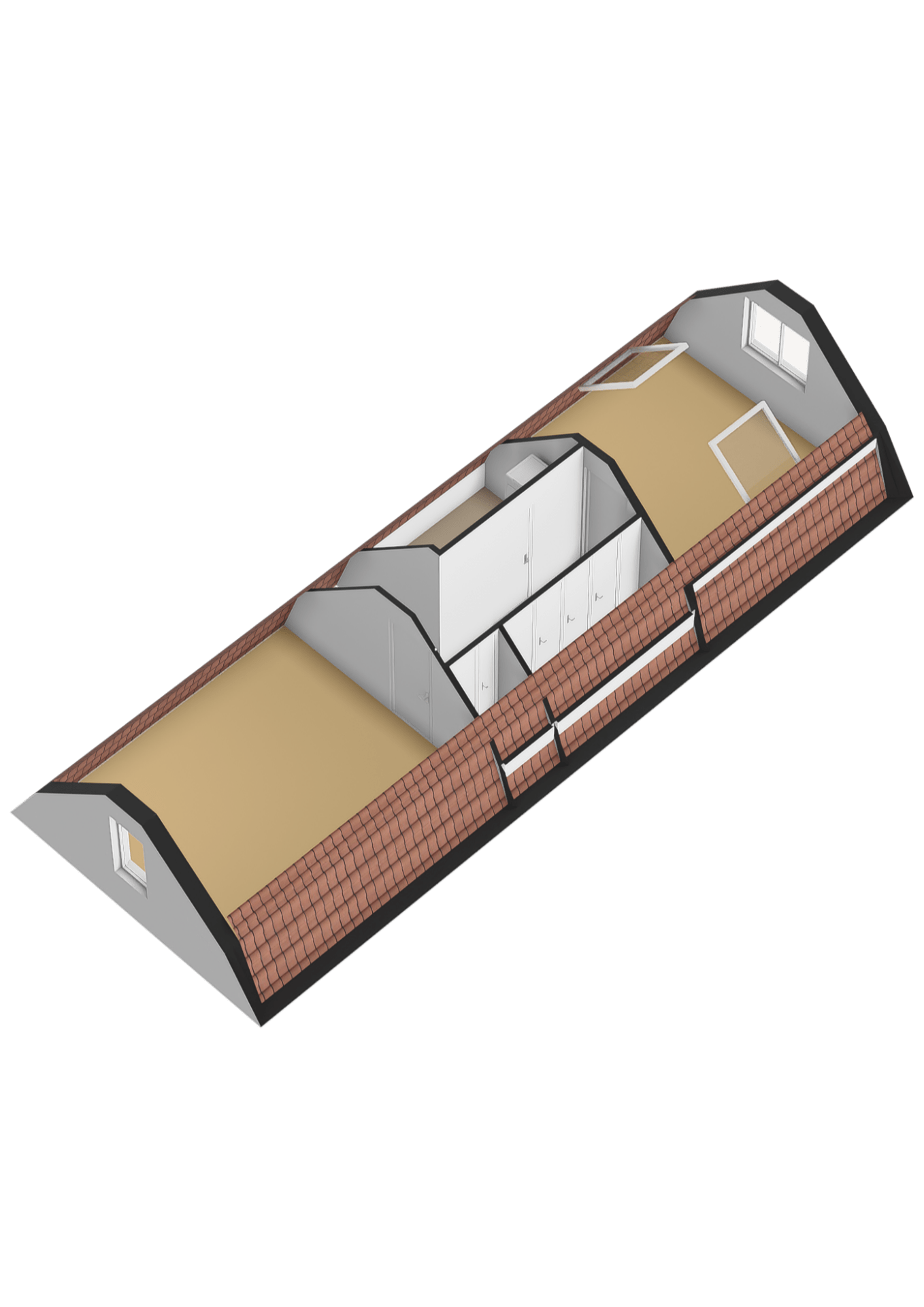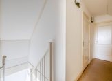Onder het hoge, schuine dak is nog een volwaardige verdieping met een overloop, twee slaapkamers en meerdere bergingen. In een van de bergingen is de opstelling van de wasapparatuur, mooi uit het zicht.