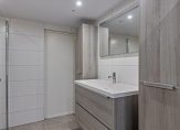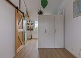 Op deze verdieping bevindt zich ook de badkamer die is ingedeeld met een inloopdouche, wandcloset, een groot wastafelmeubel en de opstelling van de wasapparatuur. Achter de maatwerkdeur is een handige berging.
