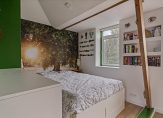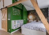 Op de eerste verdieping is een zeer ruime slaapkamer gerealiseerd met een slaap-, kleed- en een werkgedeelte. Fraaie elementen zijn de houten dakconstructie en de dakkapellen aan de voor- en achterzijde. Gezien de grootte van deze slaapkamer (circa 24 m2) is het zeer goed mogelijk om een tweede (en eventueel een derde) slaapkamer te realiseren.