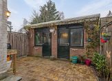 In de voortuin, op het zonnige zuiden, is genoeg plek om lekker in de zon te zitten. Het sierhekwerk met poortje past goed bij het karakter van de woning. In de achtertuin, is de dubbele berging een prima plek voor de fiets en het tuin-/klusgereedschap. Ook is het hier mogelijk om een kantoor aan huis te realiseren. Een brede poort, links van de berging, geeft toegang tot de steeg.