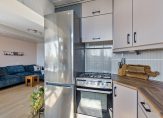 Je leest het goed, dit appartement heeft geen balkon maar twee balkons. Het balkon op het zonnige zuiden is te bereiken vanuit de woonkamer en keuken. Zoek je een plekje in de schaduw, dan is het balkon aan de achterzijde (noord) de plek om buiten te zitten.