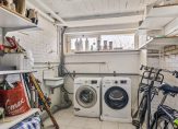Bij het appartement hoort een ruime berging in de onderbouw. Deze ruimte is voorzien van een lichte tegelvloer, elektra, water, een gootsteen en…. de aansluitingen voor de wasmachine en droger. Zo hoeven deze apparaten niet in de badkamer of keuken te staan!