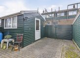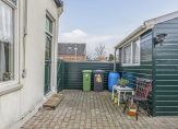 Aan de linkerzijde van de woning is een eigen achterom, die via een poort toegang geeft tot de achtertuin op het zonnige zuiden. Groene vingers zijn niet nodig, want de tuin is geheel bestraat, en in de berging is onder andere ruimte voor de fietsen. Met potten en bakken, gevuld met planten en bloemen, kun je de tuin naar eigen smaak gaan stylen.