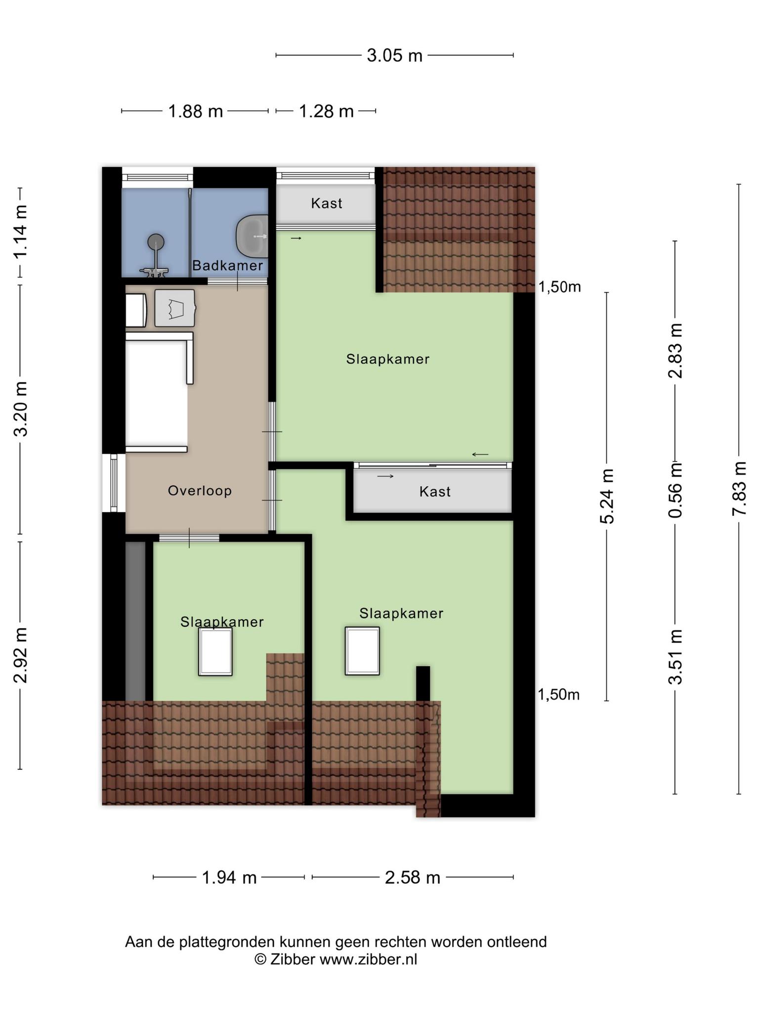 – Drie slaapkamers en een badkamer boven